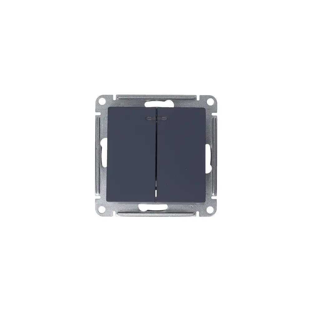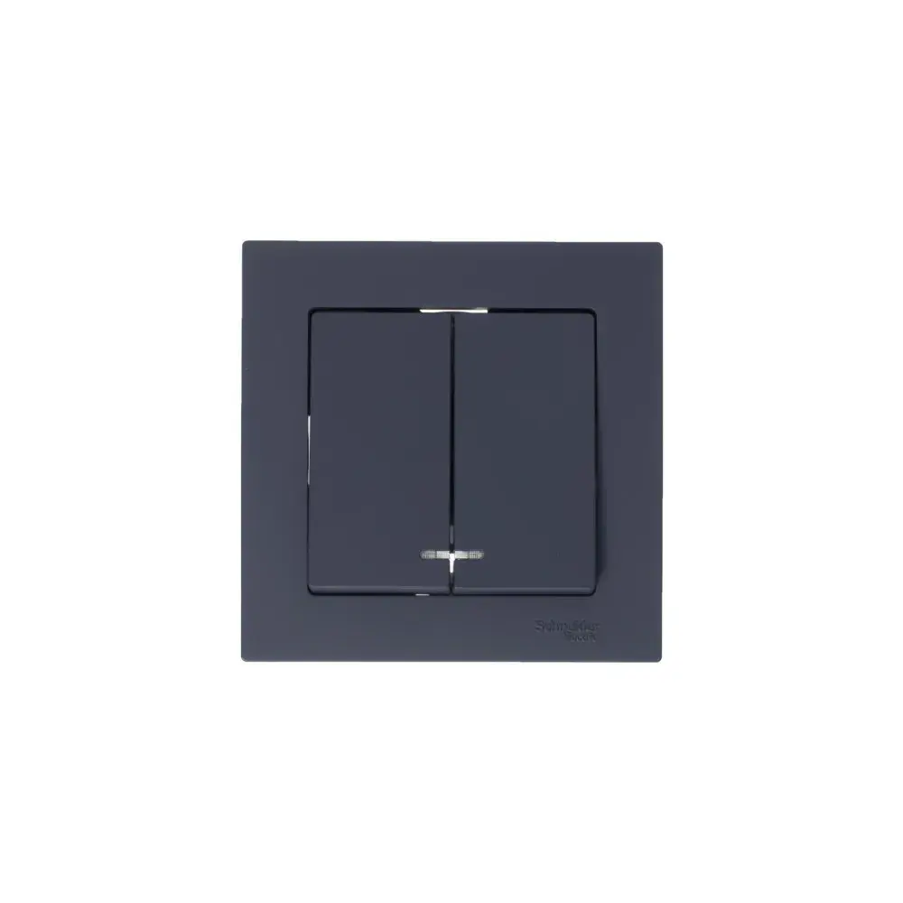 Механизм Systeme Electric (ранее Schneider Electric) серии AtlasDesign в цвете грифель выключателя 2-клавишного c подсветкой подходит для сетей 250 В, на ток 10 А. - Благодаря светодиодной подсветке синего цвета изделие легко найти в темноте. - Двухклавишный выключатель позволяет управлять двумя источниками света с одной точки. - Лицевые детали из качественного ABS-пластика, устойчивого к царапинам и УФ-излучению.