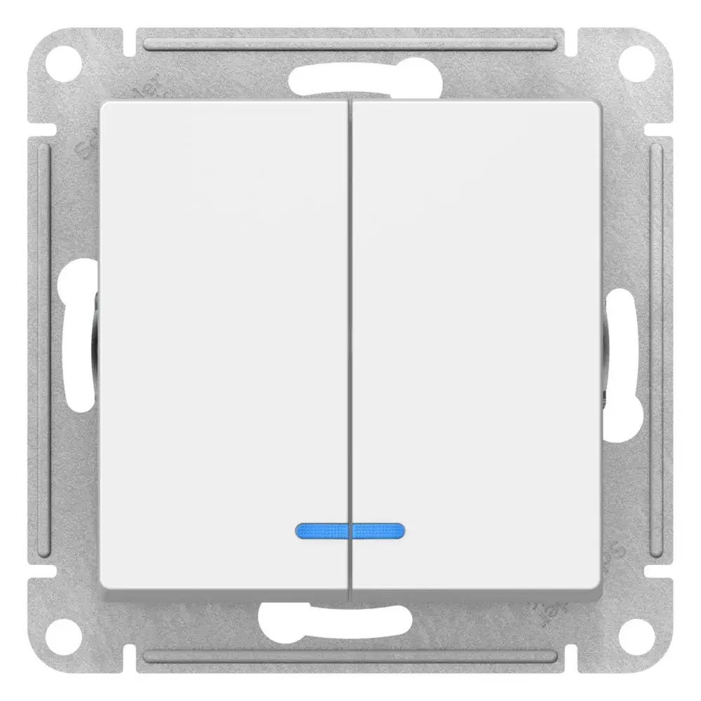 Механизм Systeme Electric (ранее Schneider Electric) серии AtlasDesign в цвете ЛОТОС выключателя 2-клавишного c подсветкой подходит для сетей 250 В, на ток 10 А. - Благодаря светодиодной подсветке синего цвета изделие легко найти в темноте. - Двухклавишный выключатель позволяет управлять двумя источниками света с одной точки. - Лицевые детали из качественного ABS-пластика, устойчивого к царапинам и УФ-излучению. - Усиленные прямые монтажные лапки для лучшей фиксации механизма в монтажной коробке.