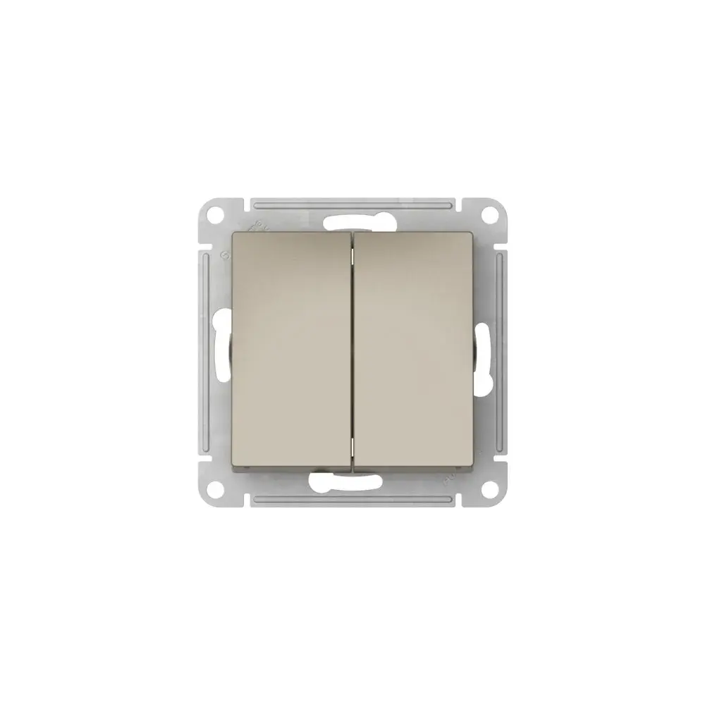 Механизм с быстрозажимными клеммами Systeme Electric (ранее Schneider Electric) серии AtlasDesign в цвете шампань 2-клавишного выключателя подходит для сетей 250 В, на ток 10 А. С помощью новых быстрозажимных клемм монтаж розеток и выключателей стал намного быстрее. Теперь подключение не требует использования отвертки. Лицевые детали из качественного ABS-пластика, устойчивого к царапинам и УФ-излучению.