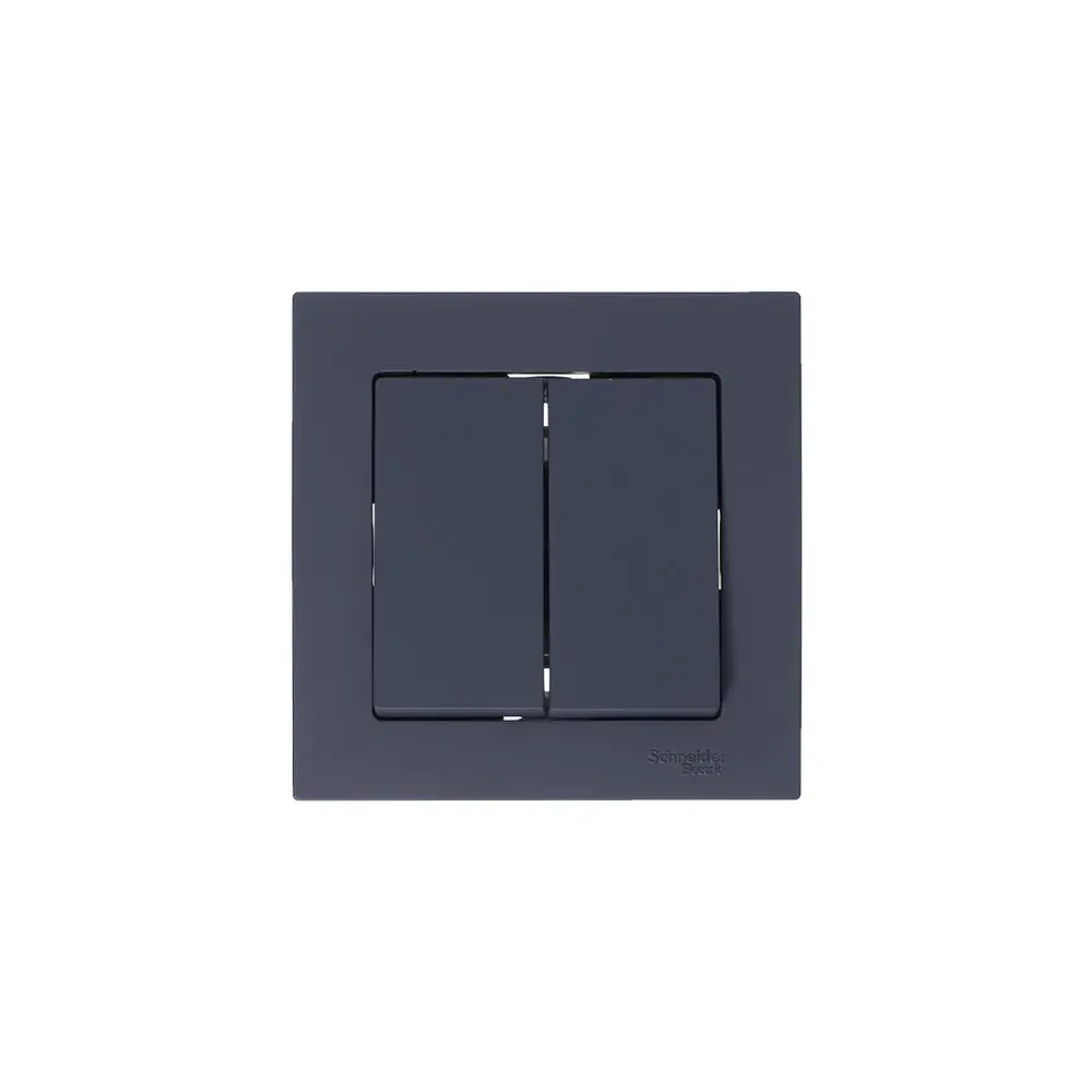 Механизм выключателя 2-клавишного Systeme Electric (ранее Schneider Electric) серии AtlasDesign в цвете грифель подходит для сетей 250 В, на ток 10 А. - Двухклавишный выключатель позволяет управлять двумя источниками света с одной точки. - Лицевые детали из качественного ABS-пластика, устойчивого к царапинам и УФ-излучению. - Усиленные прямые монтажные лапки для лучшей фиксации механизма в монтажной коробке.