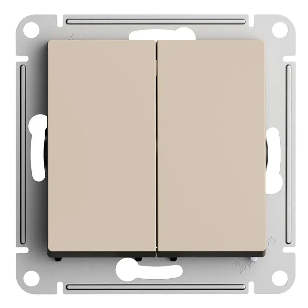 Механизм выключателя 2-клавишного Systeme Electric (ранее Schneider Electric) серии AtlasDesign в цвете ПЕСОЧНЫЙ подходит для сетей 250 В, на ток 10 А. - Двухклавишный выключатель позволяет управлять двумя источниками света с одной точки. - Лицевые детали из качественного ABS-пластика, устойчивого к царапинам и УФ-излучению. - Усиленные прямые монтажные лапки для лучшей фиксации механизма в монтажной коробке.
