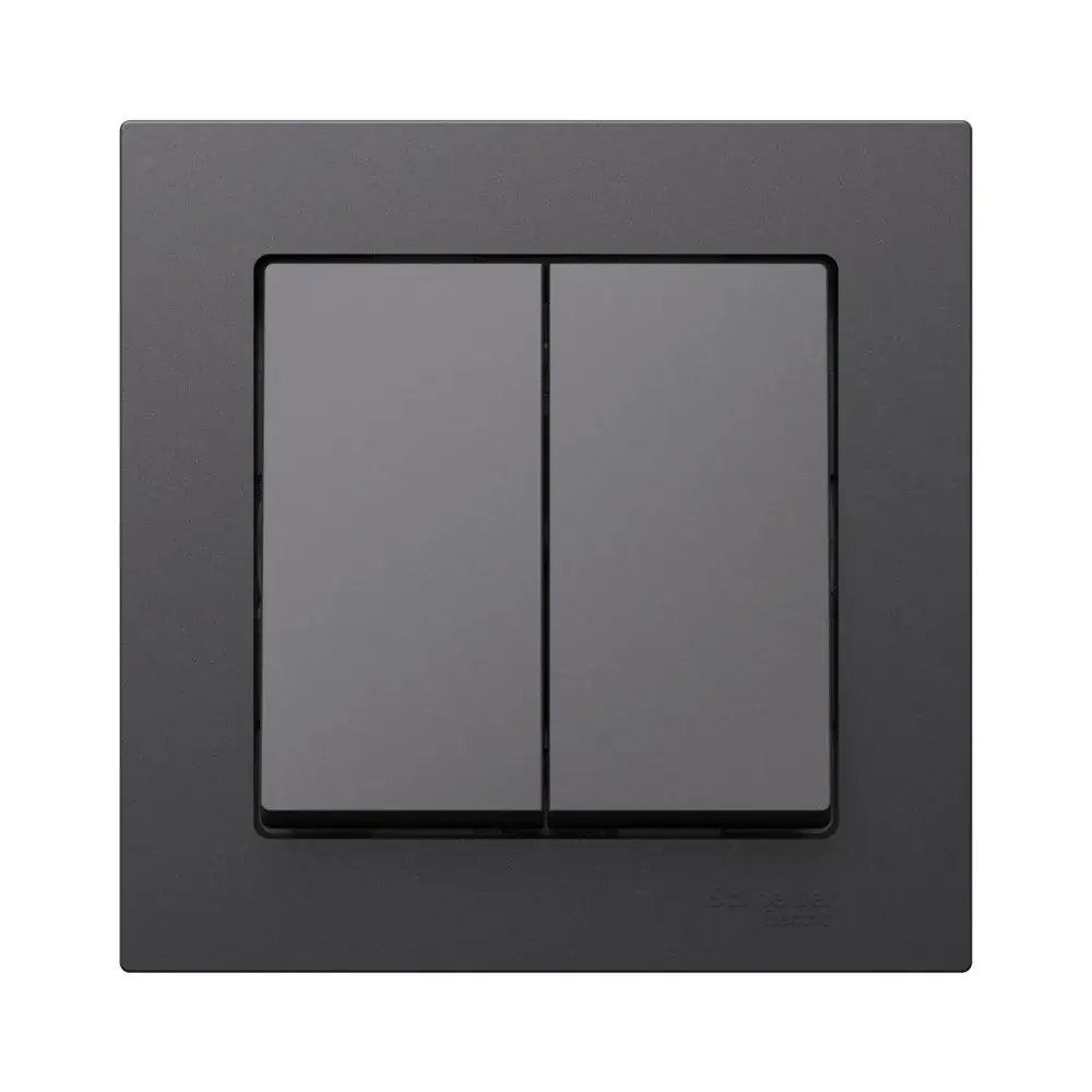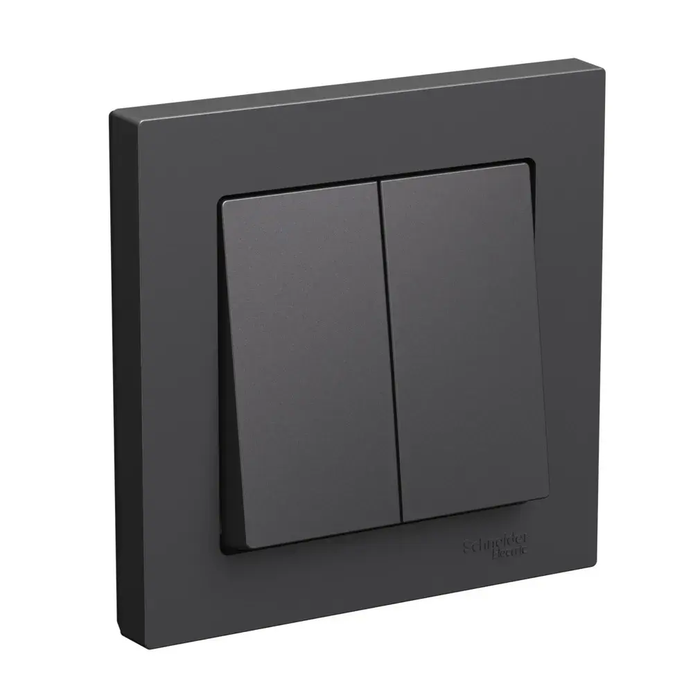 Выключатель Systeme Electric (ранее Schneider Electric) серии AtlasDesign (в сборе, цвет БАЗАЛЬТ) 2-клавишный подходит для сетей 250 В, на ток 10 А. - Двухклавишный выключатель позволяет управлять двумя источниками света с одной точки. - Лицевые детали из качественного ABS-пластика, устойчивого к царапинам и УФ-излучению. - Изделие поставляется в комплекте с рамкой того же цвета. - Усиленные прямые монтажные лапки для лучшей фиксации механизма в монтажной коробке.