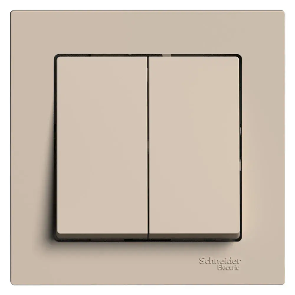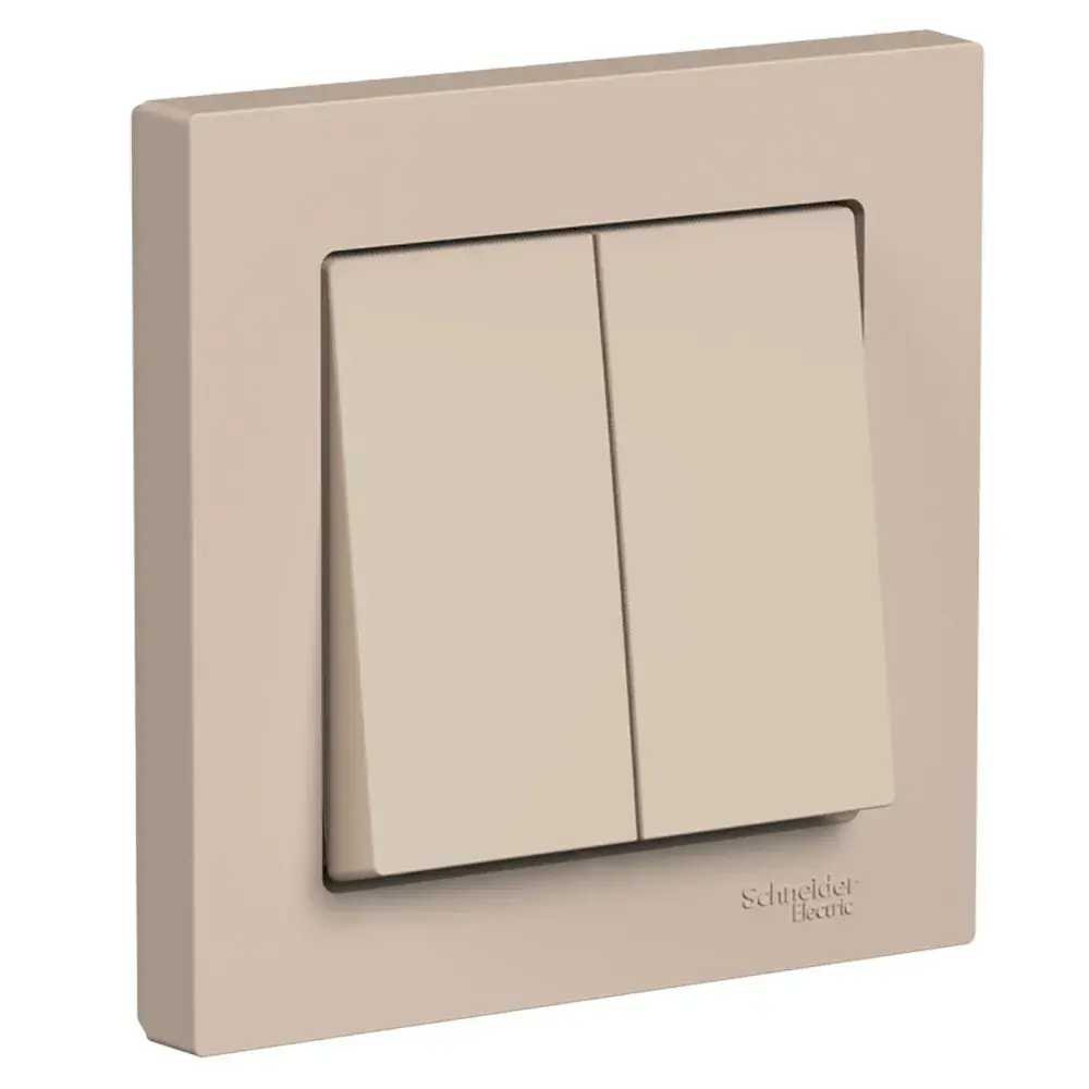 Выключатель Systeme Electric (ранее Schneider Electric) серии AtlasDesign (в сборе, цвет песочный) 2-клавишный подходит для сетей 250 В, на ток 10 А. Двухклавишный выключатель позволяет управлять двумя источниками света с одной точки. Лицевые детали из качественного ABS-пластика, устойчивого к царапинам и УФ-излучению. Изделие поставляется в комплекте с рамкой того же цвета. Усиленные прямые монтажные лапки для лучшей фиксации механизма в монтажной коробке.