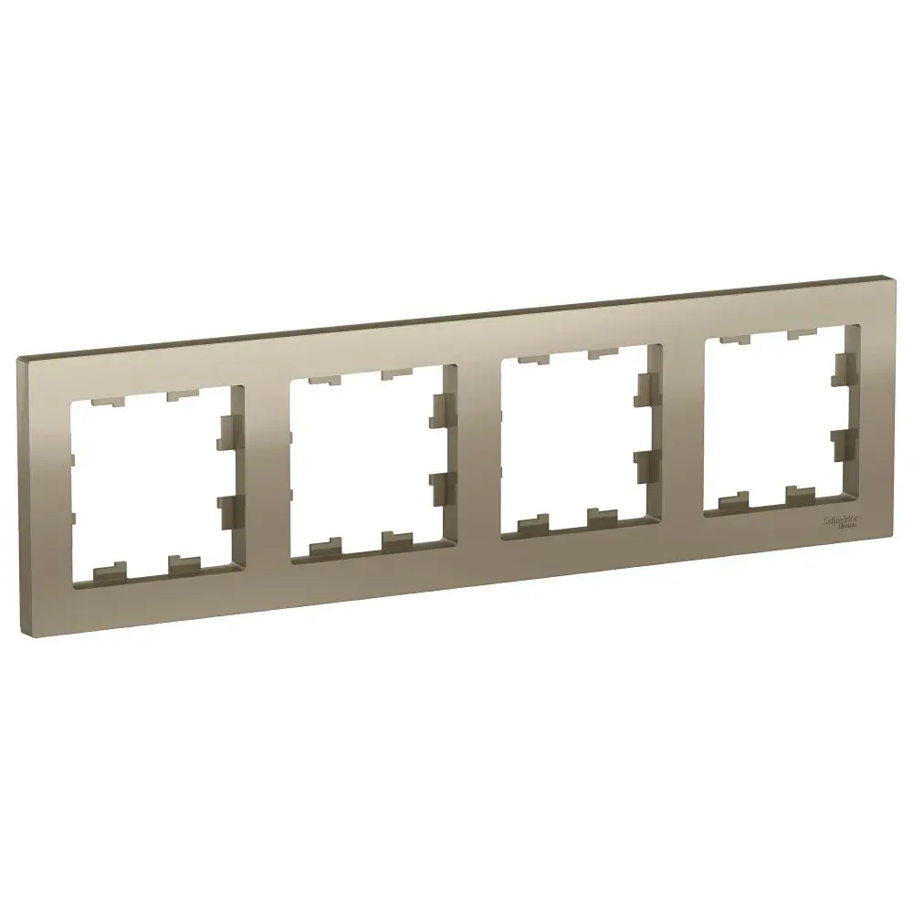 Рамка Systeme Electric (ранее Schneider Electric) серии AtlasDesign в цвете шампань четырёхместная. - Устанавливается в вертикальном и горизонтальном положениях. - Лицевые детали из качественного ABS-пластика, устойчивого к царапинам и УФ-излучению. - Позволяет гармонично вписать электроустановочное изделие в интерьер помещения.