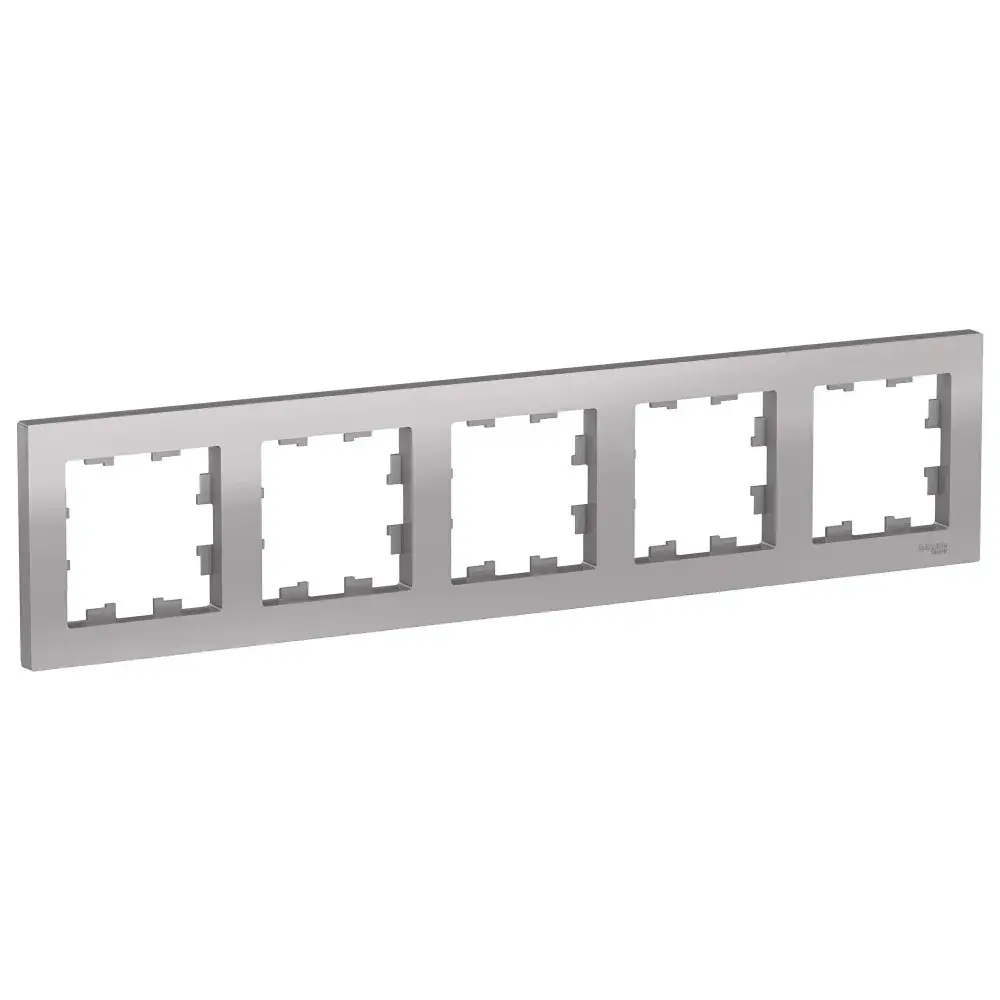 Рамка Systeme Electric (ранее Schneider Electric) серии AtlasDesign в цвете алюминий пятиместная. - Устанавливается в вертикальном и горизонтальном положениях. - Лицевые детали из качественного ABS-пластика, устойчивого к царапинам и УФ-излучению. - Позволяет гармонично вписать электроустановочное изделие в интерьер помещения.