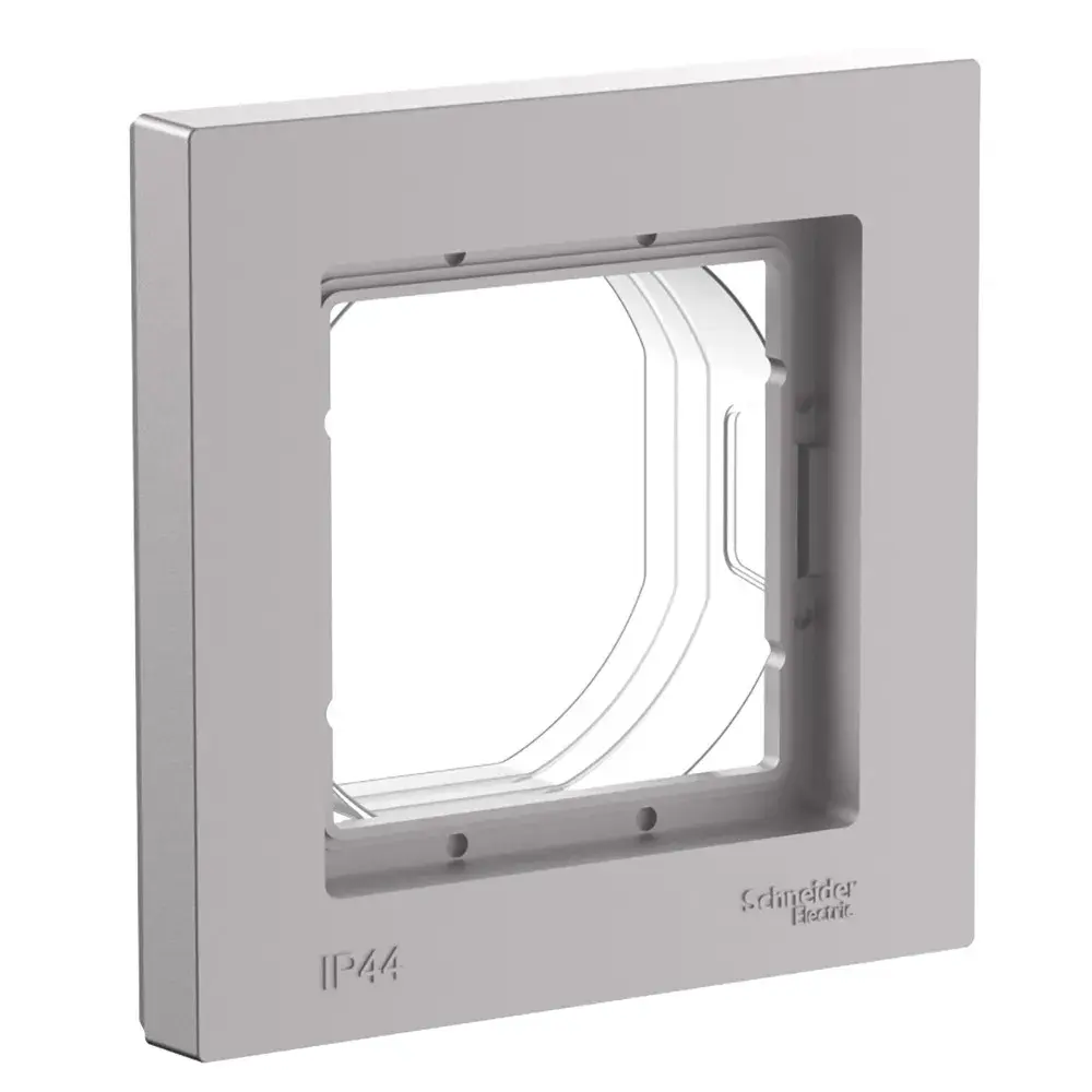 Рамка Systeme Electric (ранее Schneider Electric) серии AtlasDesign Aqua (цвет алюминий) одинарная. - Изделие со степенью защиты IP44 обеспечит безопасность использования в ванной и на кухне. - Позволяет гармонично вписать электроустановочное изделие в интерьер помещения. - Несмотря на внешнее сходство, конструкция рамок серии AtlasDesign Aqua отличается от конструкции рамок AtlasDesign. Механизмы и рамки со степенью защиты IP20 несовместимы с механизмами и рамками со степенью защиты IP44.