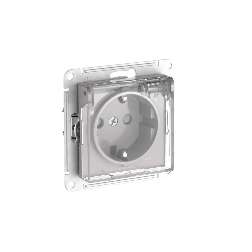 Механизм с быстрозажимными клеммами Systeme Electric (ранее Schneider Electric) серии AtlasDesign Aqua (цвет алюминий) розетки с заземлением, шторками и крышкой подходит для сетей 250 В, на ток 16А. С помощью новых быстрозажимных клемм монтаж стал намного быстрее. Теперь при подключении не требуется отвертка. Изделие со степенью защиты IP44 обеспечит безопасность использования в ванной и на кухне. Конструкция AtlasDesign Aqua отличается от AtlasDesign. Механизм IP44 и рамки IP20 несовместимы.