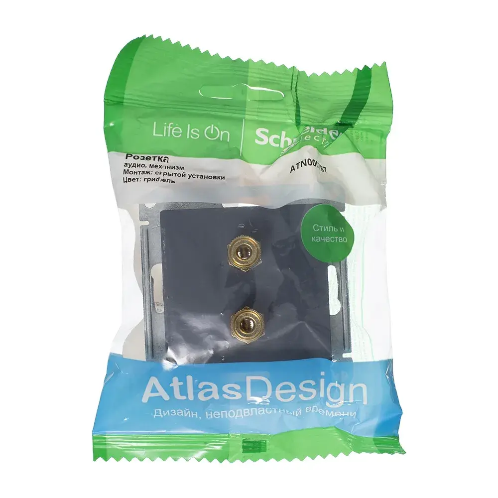 Механизм Systeme Electric (ранее Schneider Electric) серии AtlasDesign в цвете грифель двойной аудиорозетки. - Лицевые детали из качественного ABS-пластика, устойчивого к царапинам и УФ-излучению. - Усиленные прямые монтажные лапки для лучшей фиксации механизма в монтажной коробке.