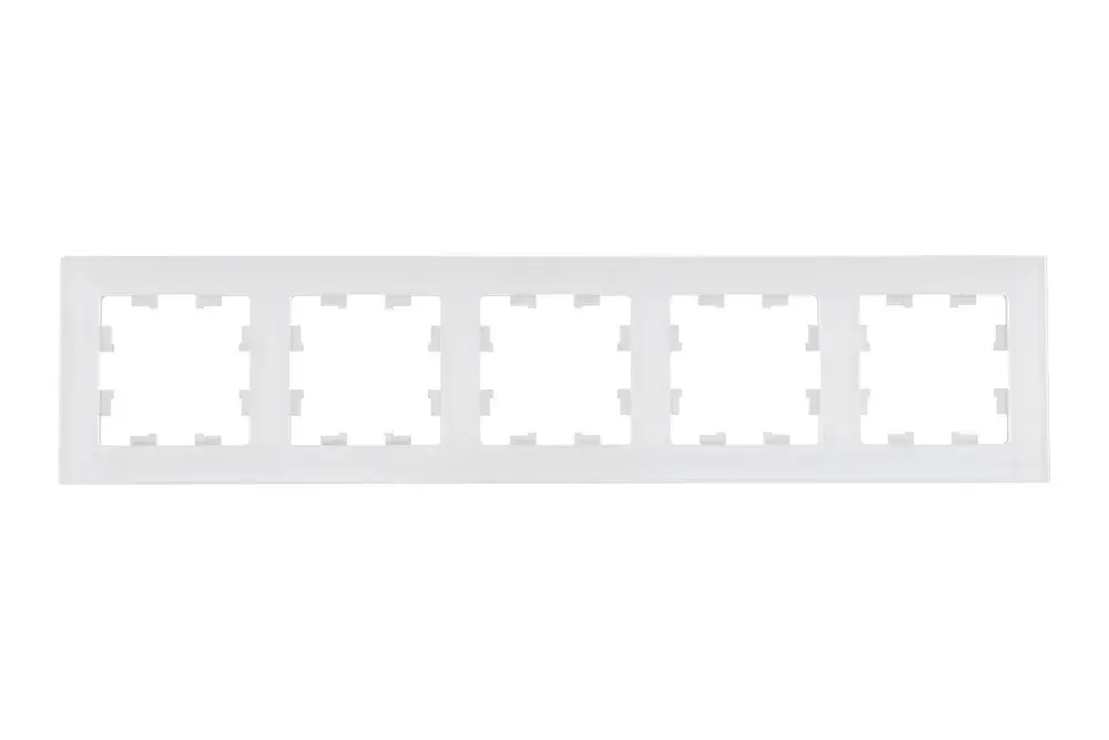 Рамка Systeme Electric (ранее Schneider Electric) серии AtlasDesign Nature (цвет белый) 5-постовая Рамки выполнены из высококачественного закаленного стекла и отлично дополнят современный стильный интерьер. Закалённое стекло гарантирует устойчивость к механическим воздействиям, а высокоточная обработка граней рамки подчёркивает изысканность форм