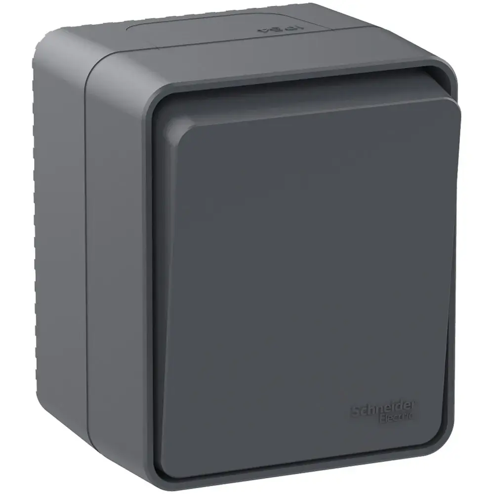 Переключатель 1-клавишный для открытого монтажа. Степень защиты IP:54, Степень защиты IK: IK08. Продукция AtlasDesign Profi54 созданы специально для тех мест, где требуется повышенная защита от влаги и пыли. Уютная веранда в загородном доме, уличное кафе, любимый гараж или мастерская – выключатели и розетки будут обеспечивать надежную защиту и радовать глаз современным дизайном. Элегантный цвет антрацит гармонично впишется в любую обстановку.