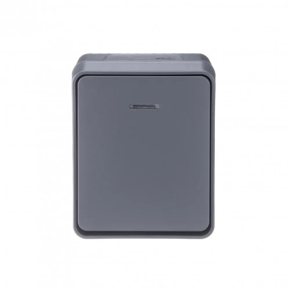 Выключатель 1-клавишный с подсветкой для открытого монтажа. Степень защиты IP:54, Степень защиты IK: IK08. Продукция AtlasDesign Profi54 созданы специально для тех мест, где требуется повышенная защита от влаги и пыли. Уютная веранда в загородном доме, уличное кафе, любимый гараж или мастерская – выключатели и розетки будут обеспечивать надежную защиту и радовать глаз современным дизайном. Элегантный цвет антрацит гармонично впишется в любую обстановку.