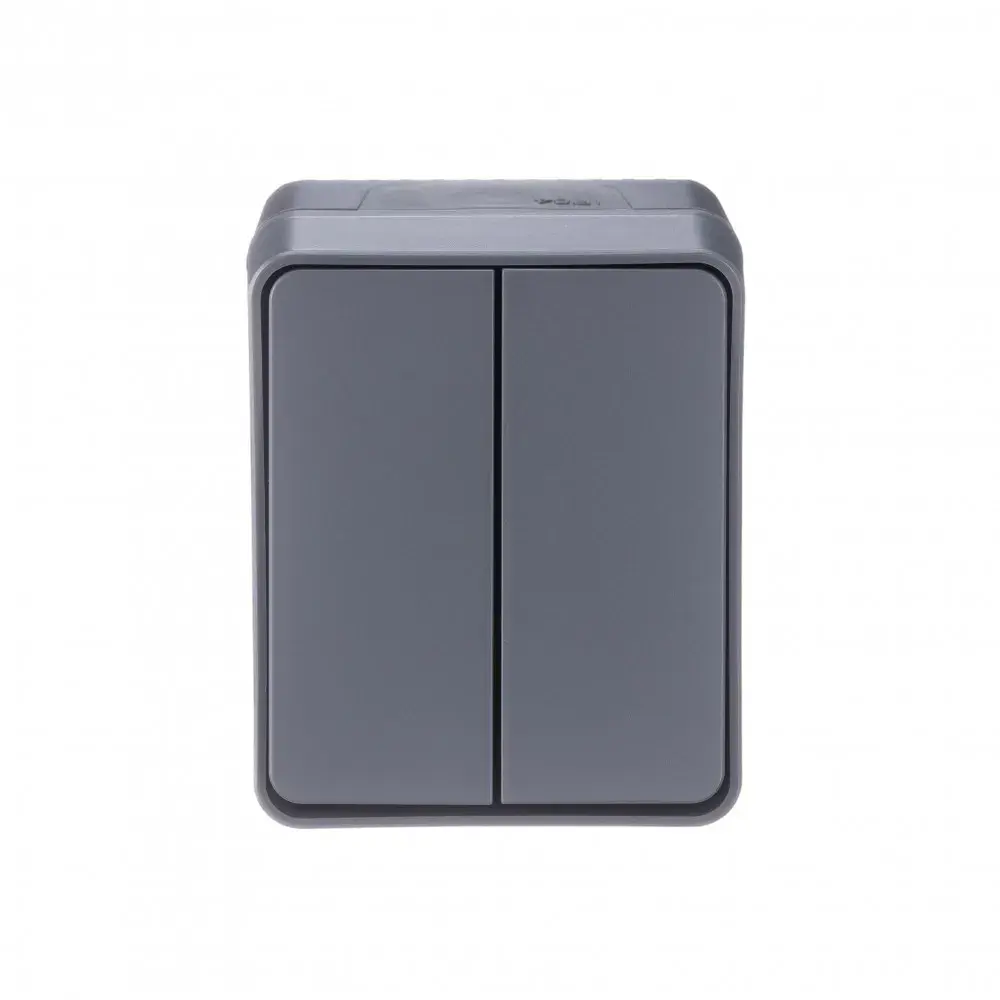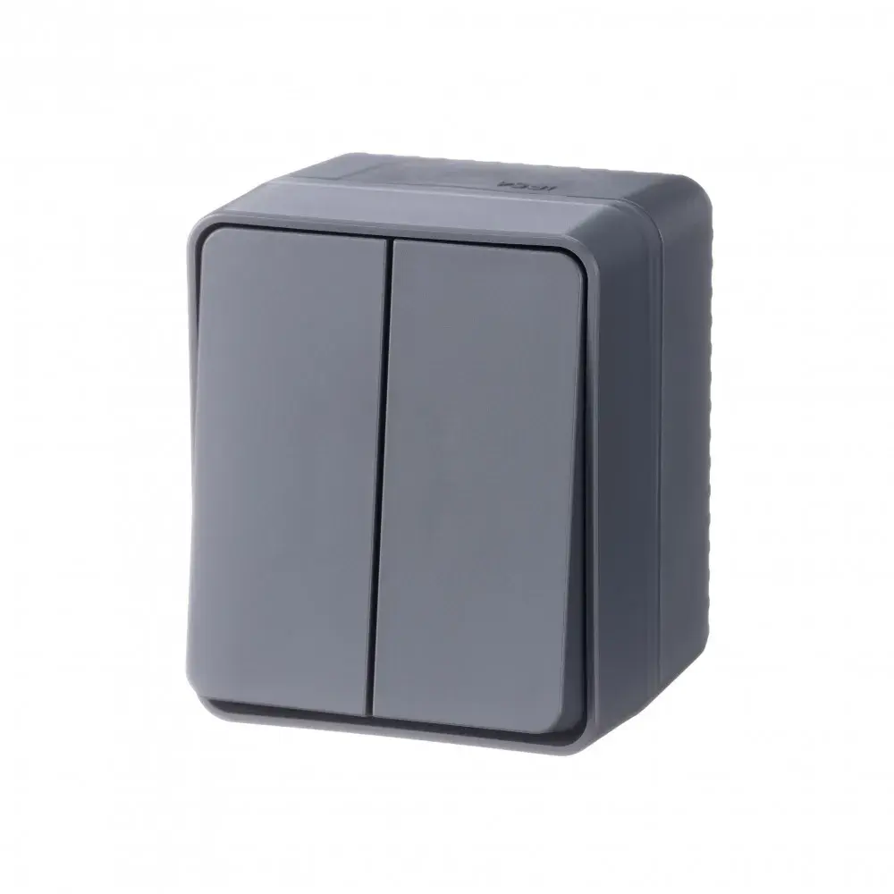 Выключатель 2-клавишный для открытого монтажа. Степень защиты IP:54, Степень защиты IK: IK08. Продукция AtlasDesign Profi54 созданы специально для тех мест, где требуется повышенная защита от влаги и пыли. Уютная веранда в загородном доме, уличное кафе, любимый гараж или мастерская – выключатели и розетки будут обеспечивать надежную защиту и радовать глаз современным дизайном. Элегантный цвет антрацит гармонично впишется в любую обстановку.