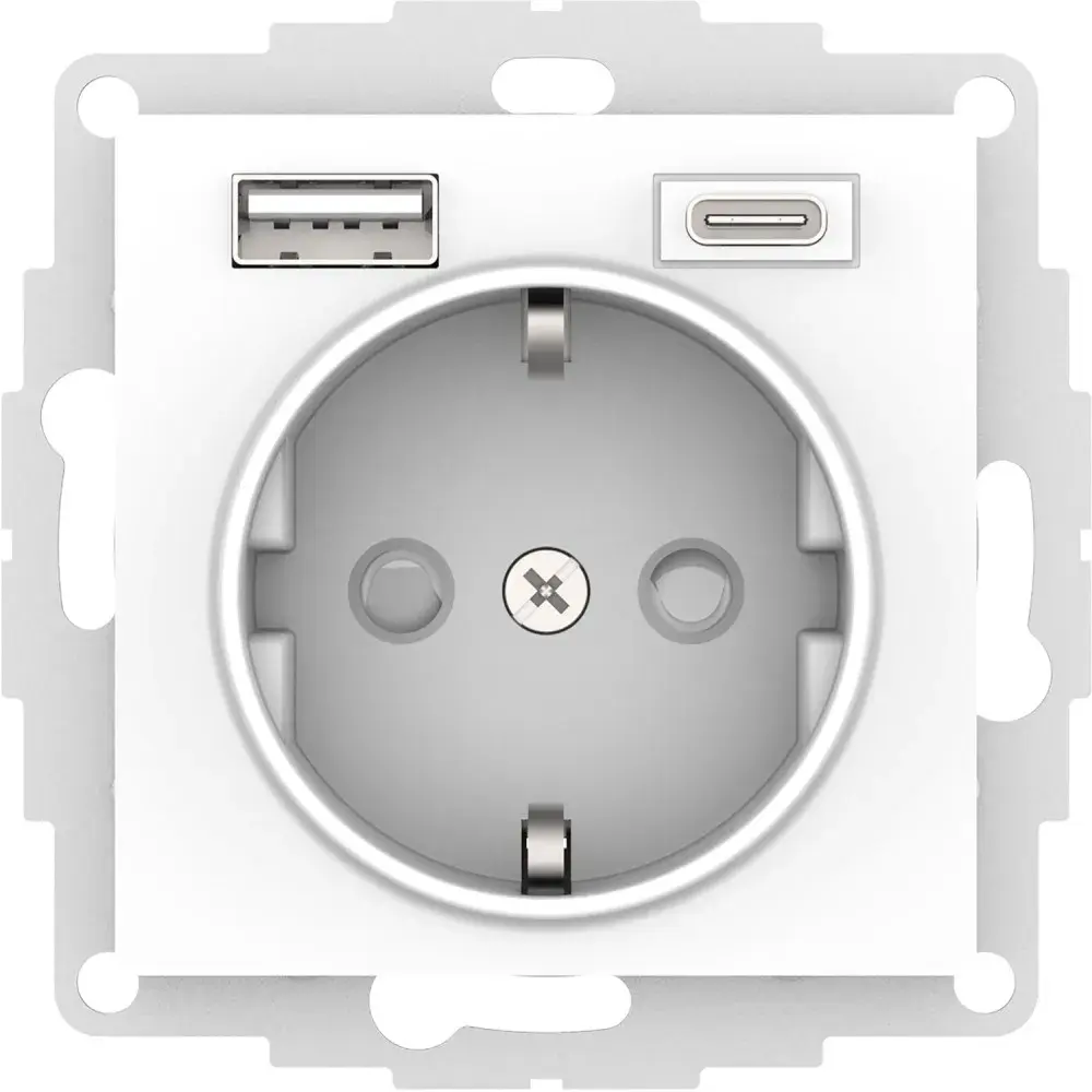 Розетка силовая Systeme Electric (ранее Schneider Electric) серии AtlasDesign 16А (цвет белый) с заземлением и шторками с розеткой USB, с двумя разъемами тип А и тип С. Розетка совмещает в себе сразу 3 функции в одном изделии. Удобное и современное решение для дома, офиса и других помещений. - Лицевые детали из качественного ABS-пластика, устойчивого к царапинам и УФ-излучению. - Заземляющий контакт обеспечивает дополнительную защиту от удара электрическим током. - Шторки обеспечивают дополнительную безопасность в доме, где находятся дети. - Одно устройство позволяет как подключить бытовые приборы, так и зарядить мобильные устройства.