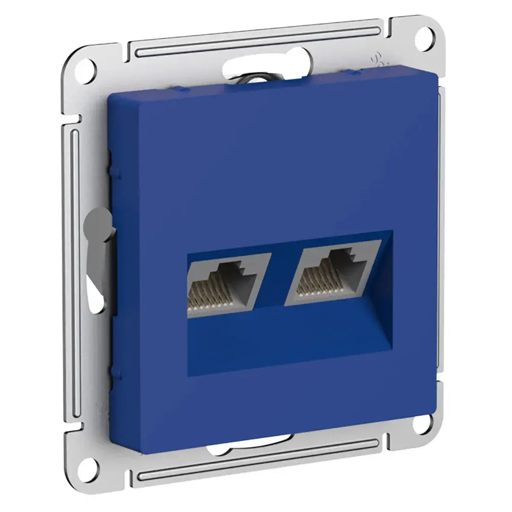 Механизм Systeme Electric (ранее Schneider Electric) серии AtlasDesign в цвете аквамарин двойной розетки компьютерной с разъёмом RJ45 категория 5е предназначен для удобного и быстрого подключения вашего компьютера к локальной вычислительной сети. - Лицевые детали из качественного ABS-пластика, устойчивого к царапинам и УФ-излучению. - Усиленные прямые монтажные лапки для лучшей фиксации механизма в монтажной коробке.
