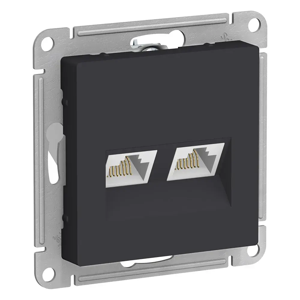 Механизм Systeme Electric (ранее Schneider Electric) серии AtlasDesign в цвете карбон двойной розетки компьютерной с разъёмом RJ45 категория 5е предназначен для удобного и быстрого подключения вашего компьютера к локальной вычислительной сети. - Лицевые детали из качественного ABS-пластика, устойчивого к царапинам и УФ-излучению. - Благодаря покрытию «soft touch» к изделию приятно прикасаться. - Усиленные прямые монтажные лапки для лучшей фиксации механизма в монтажной коробке.
