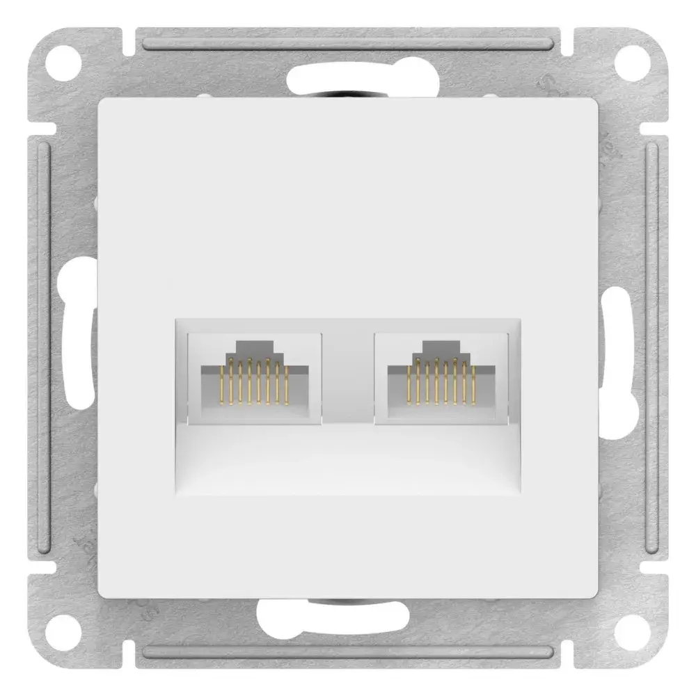 Механизм Systeme Electric (ранее Schneider Electric) серии AtlasDesign в цвете ЛОТОС двойной розетки компьютерной с разъёмом RJ45 категория 5е предназначен для удобного и быстрого подключения вашего компьютера к локальной вычислительной сети. - Лицевые детали из качественного ABS-пластика, устойчивого к царапинам и УФ-излучению. - Усиленные прямые монтажные лапки для лучшей фиксации механизма в монтажной коробке.