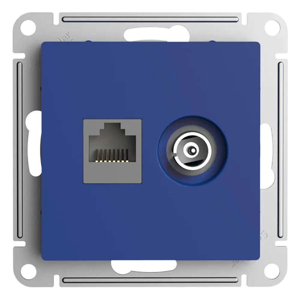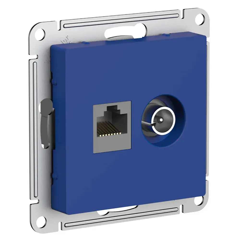 Механизм Systeme Electric (ранее Schneider Electric) серии AtlasDesign в цвете аквамарин двойной розетки разъёмами RJ45 категория 5е и TV предназначен для удобного и быстрого подключения вашего компьютера и телевизора к соответствующим сетям. - Лицевые детали из качественного ABS-пластика, устойчивого к царапинам и УФ-излучению. - Усиленные прямые монтажные лапки для лучшей фиксации механизма в монтажной коробке.