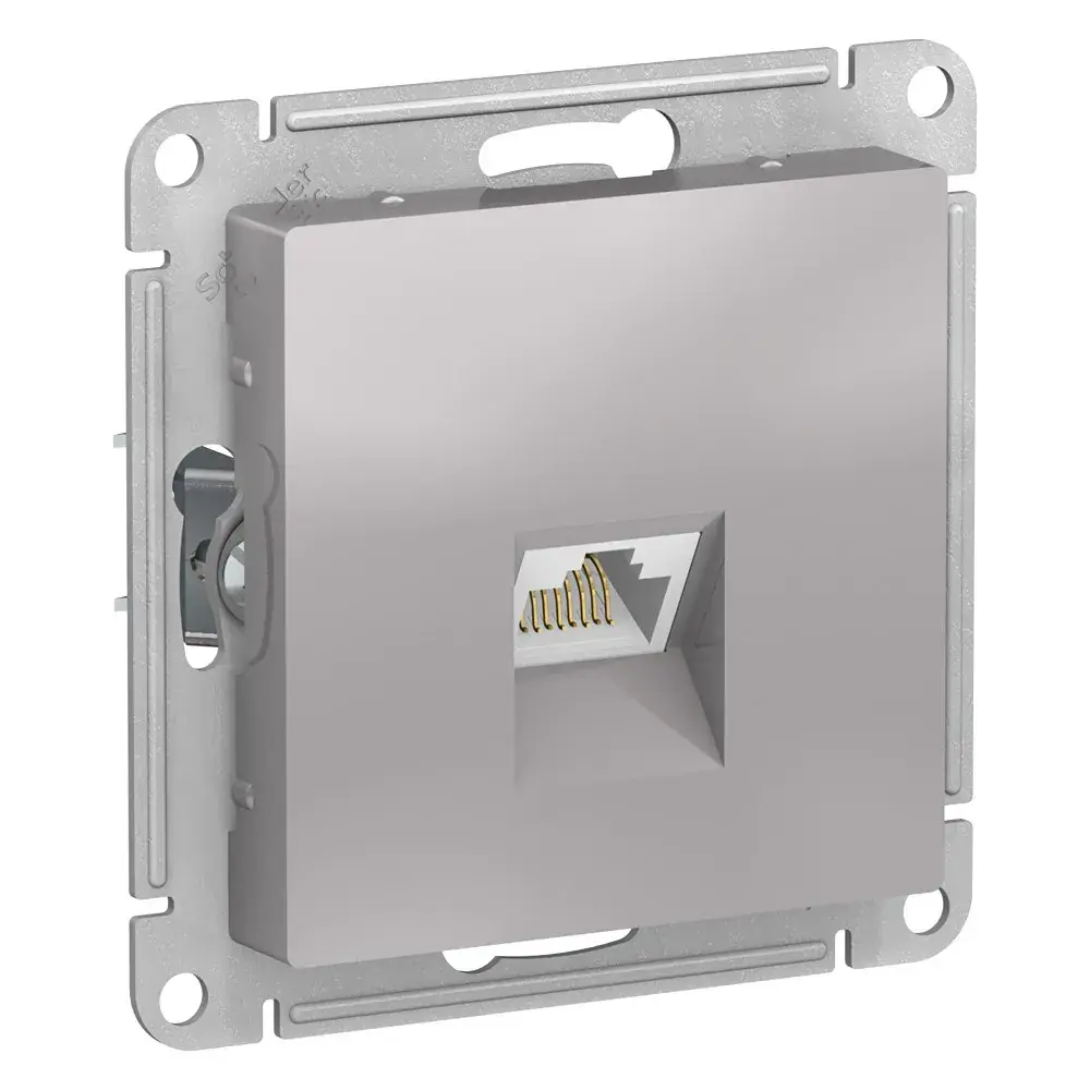 Механизм Systeme Electric (ранее Schneider Electric) серии AtlasDesign в цвете алюминий розетки компьютерной с разъёмом RJ45 категории 6А предназначен для удобного и быстрого подключения вашего компьютера к локальной вычислительной сети. - Обладает высокой скоростью передачи данных до 10 Гбит/с, диапазон частоты до 500 МГц. - Лицевые детали из качественного ABS-пластика, устойчивого к царапинам и УФ-излучению. - Усиленные прямые монтажные лапки для лучшей фиксации механизма в монтажной коробке.