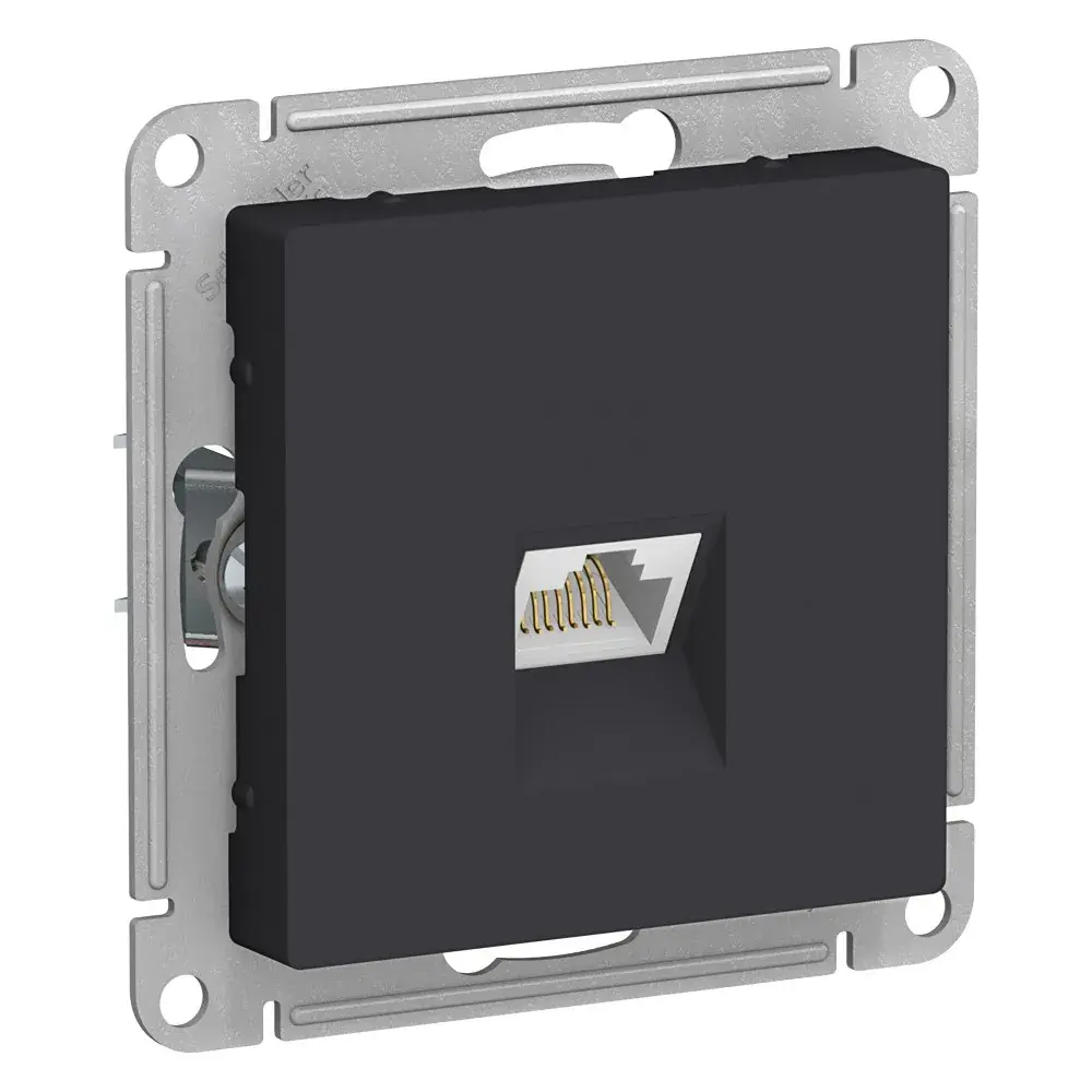 Механизм Systeme Electric (ранее Schneider Electric) серии AtlasDesign в цвете карбон розетки компьютерной с разъёмом RJ45 категории 6А предназначен для удобного и быстрого подключения вашего компьютера к локальной вычислительной сети. - Обладает высокой скоростью передачи данных до 10 Гбит/с, диапазон частоты до 500 МГц. - Лицевые детали из качественного ABS-пластика, устойчивого к царапинам и УФ-излучению. - Усиленные прямые монтажные лапки для лучшей фиксации механизма в монтажной коробке.