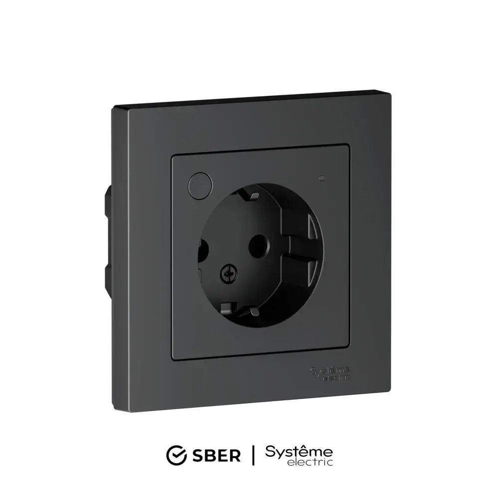 Умная розетка из линейки AtlasDesign Smart в цвете карбон — это возможности умного дома в классическом дизайне.