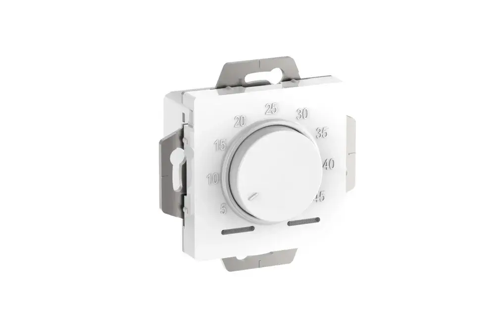 Термостат Systeme Electric (ранее Schneider Electric) серии AtlasDesign электронный для теплого пола, с датчиком, 10 A в цвете ЛОТОС Обеспечит комфортное регулирование температуры пола и идеально впишется в интерьер помещений. Ном. напряжение: 230 В Частота: 50 Гц Электронная защита от перенапряжения Диапазон регулирования: от +5 до +45 °С Датчик температуры пола в комплекте (кабель 2,5 м), тип NTC Степень защиты от пыли и влаги: IP20