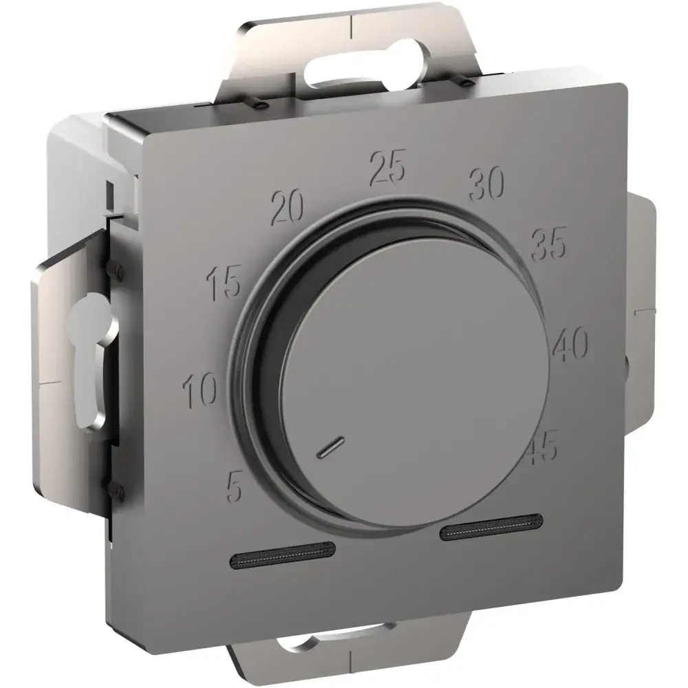 Термостат Systeme Electric (ранее Schneider Electric) серии AtlasDesign электронный для теплого пола, с датчиком, 10 A в цвете сталь Обеспечит комфортное регулирование температуры пола и идеально впишется в интерьер помещений. Ном. напряжение: 230 В Частота: 50 Гц Электронная защита от перенапряжения Диапазон регулирования: от +5 до +45 °С Датчик температуры пола в комплекте (кабель 2,5 м), тип NTC Степень защиты от пыли и влаги: IP20