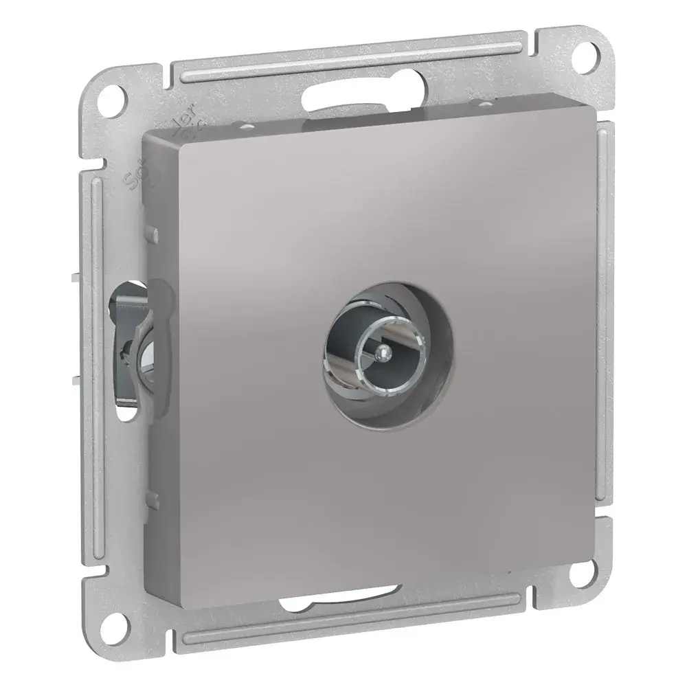 Механизм Systeme Electric (ранее Schneider Electric) серии AtlasDesign в цвете алюминий розетки TV проходной 4DB предназначен для подключения телевизора к телевизионной сети. - Лицевые детали из качественного ABS-пластика, устойчивого к царапинам и УФ-излучению. - Проходная розетка используется в начале и середине подключения «в линию». - Усиленные прямые монтажные лапки для лучшей фиксации механизма в монтажной коробке.