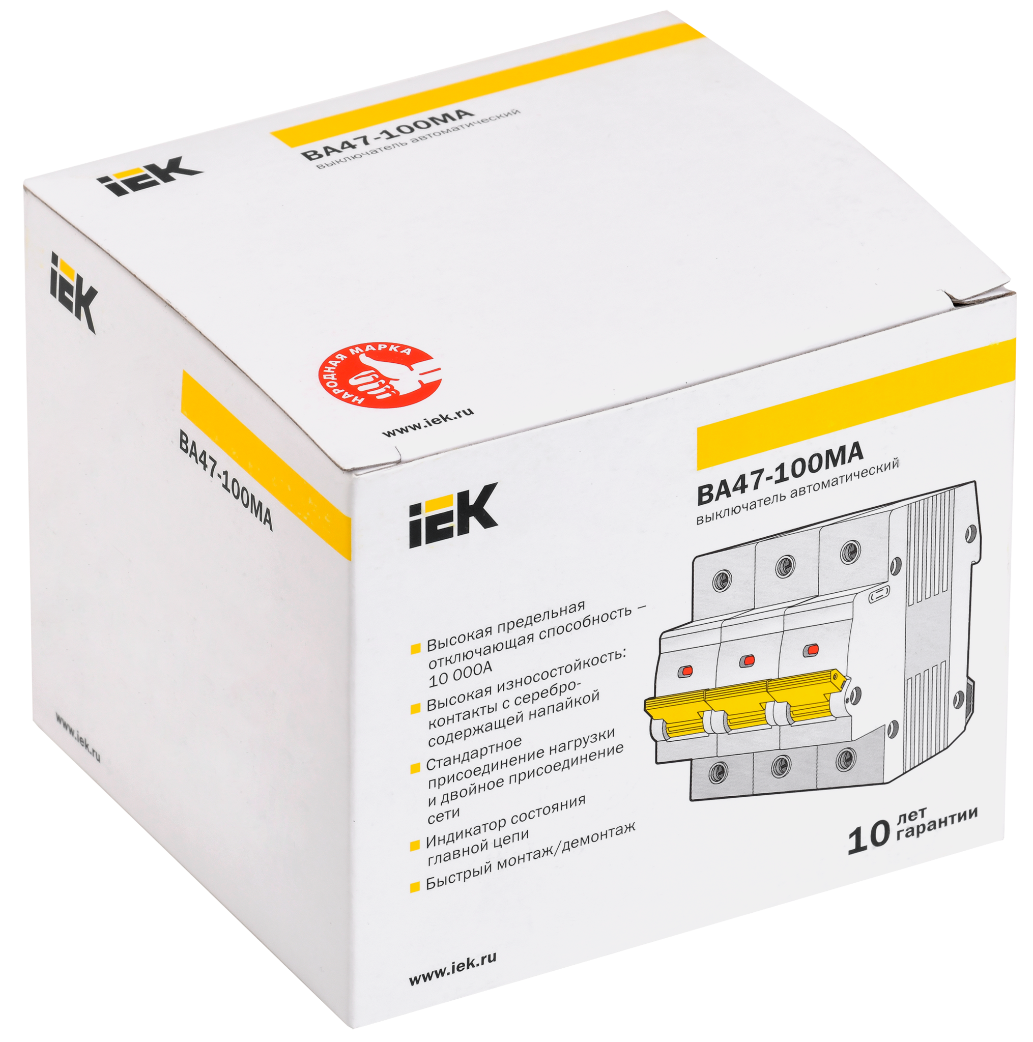 Автоматический выключатель ВА47-100МА без теплового расцепителя 3P 63А 10кА D IEK