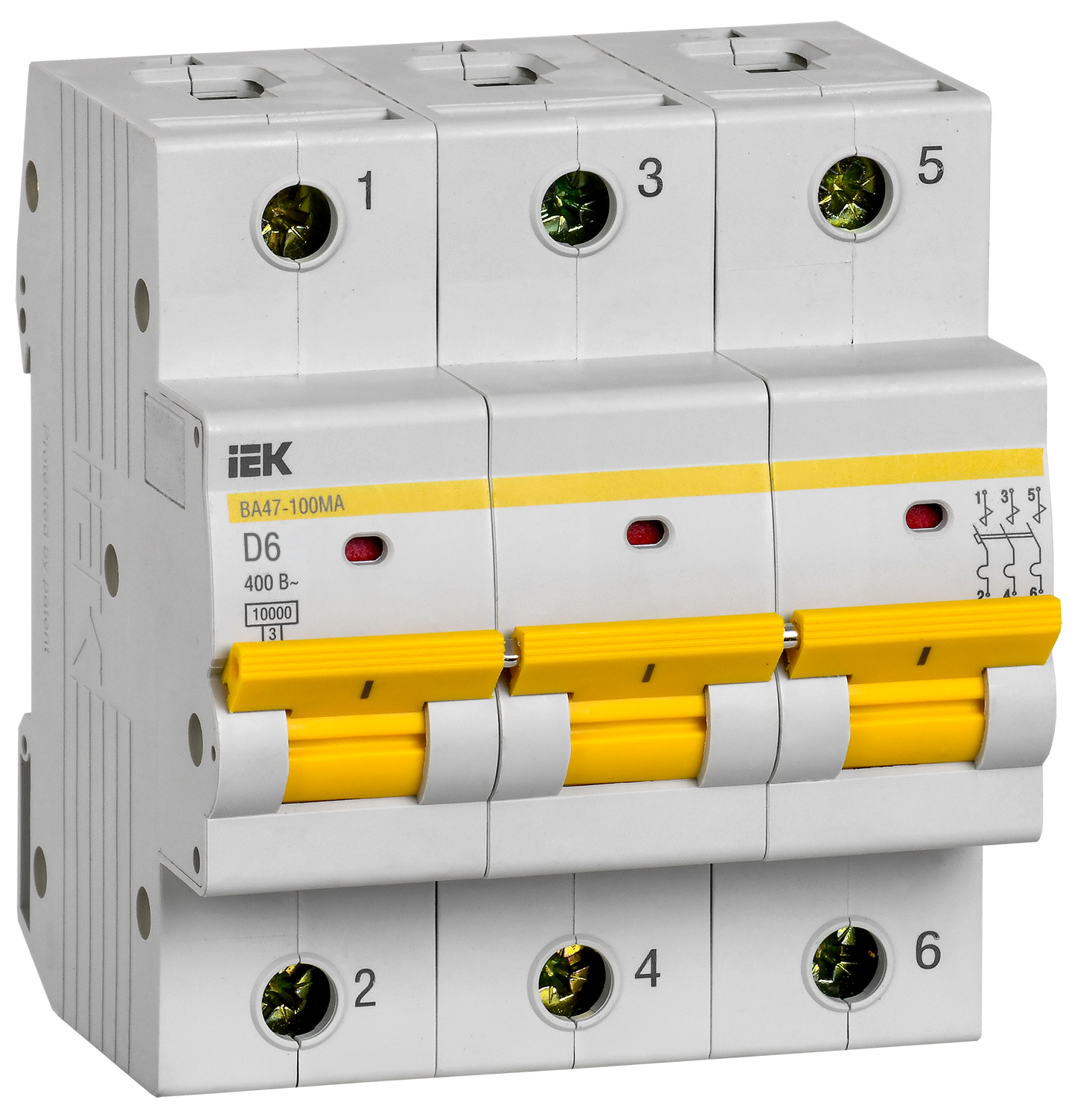 Автоматический выключатель ВА47-100МА без теплового расцепителя 3P 6А 10кА D IEK