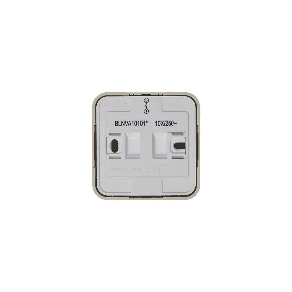 Выключатель одноклавишный Systeme Electric (ранее Schneider Electric) BLANCA (открытой установки, цвет бежевый) с изолирующей пластиковой пластиной предназначен для сетей до 250 В, на ток до 10 А. -Корпус изделия выполнен из ABS-пластика. - Четкая маркировка клемм для безошибочного подключения. - Увеличенная площадь контактной поверхности гарантирует надежность и качество соединения, исключая потери.
