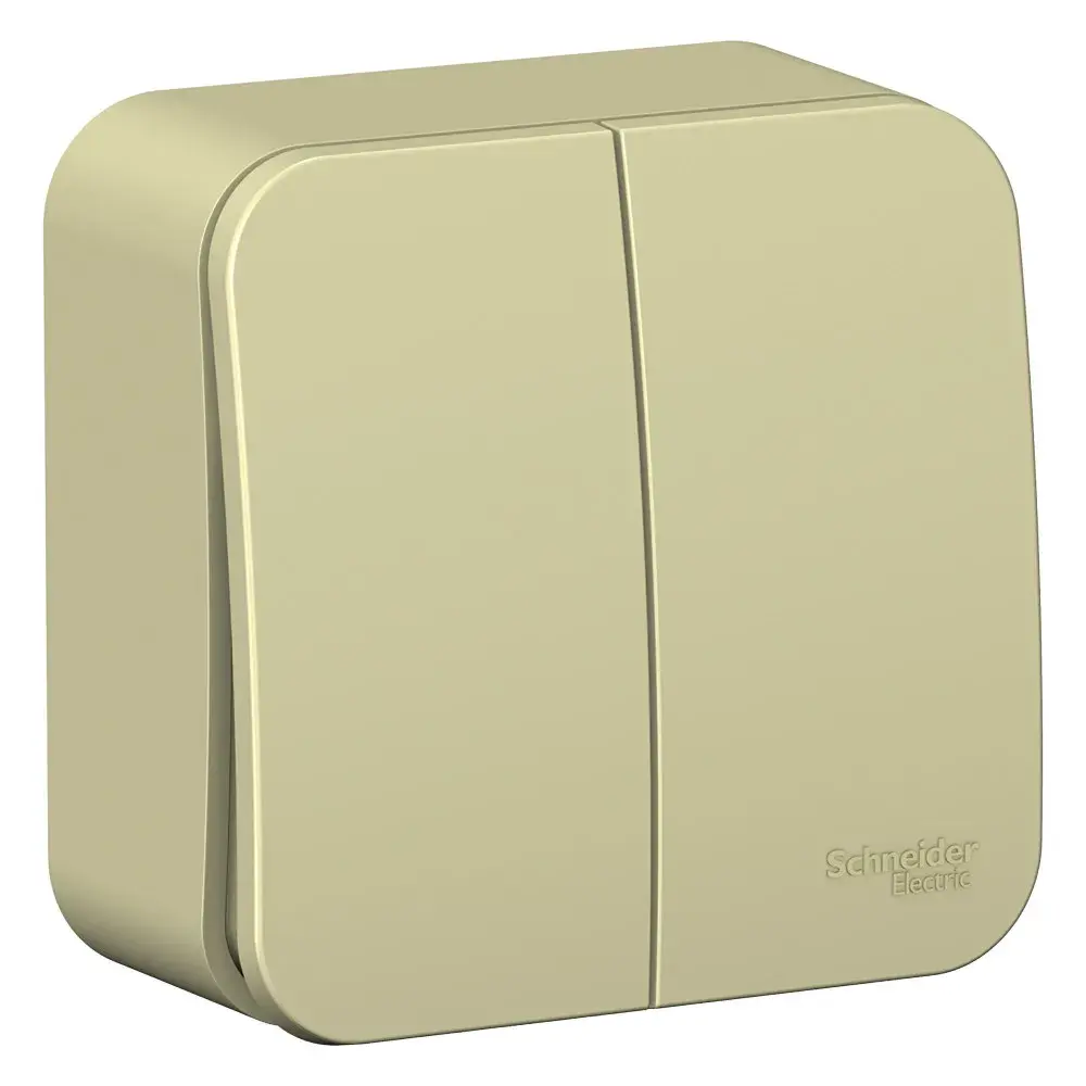 Выключатель двухклавишный Systeme Electric (ранее Schneider Electric) BLANCA (открытой установки, цвет бежевый) с изолирующей пластиковой пластиной предназначен для сетей до 250 В, на ток до 10 А. -Корпус изделия выполнен из ABS-пластика. - Четкая маркировка клемм для безошибочного подключения. - С его помощью можно управлять двумя источниками света с одной точки. - Увеличенная площадь контактной поверхности гарантирует надежность и качество соединения, исключая потери.