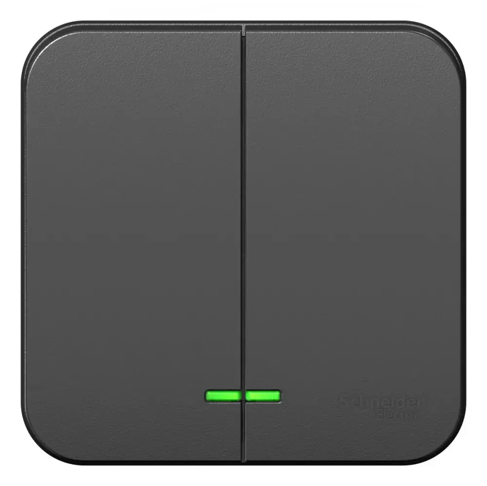 Выключатель Systeme Electric (ранее Schneider Electric) BLANCA (антрацит, открытой установки) с изолирующей пластиной двухклавишный предназначен для сетей до 250В, на ток до 10А. Подсветка делает его легко находимым в отсутствие освещения. Двухклавишный выключатель позволяет управлять двумя источниками света из одной точки.