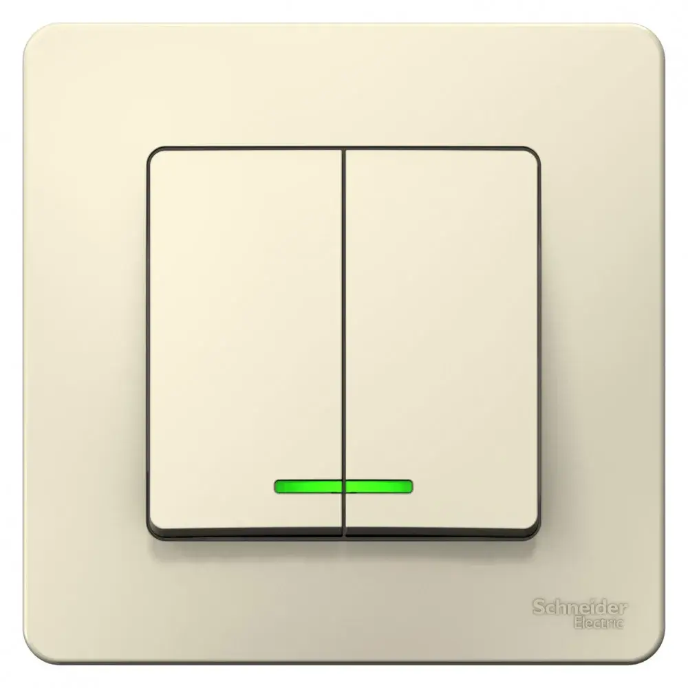 Выключатель Systeme Electric (ранее Schneider Electric) BLANCA (молочный, скрытой установки) двухклавишный предназначен для сетей до 250В, на ток до 10А. Подсветка делает его легко находимым в отсутствие освещения. Двухклавишный выключатель позволяет управлять двумя источниками света из одной точки.
