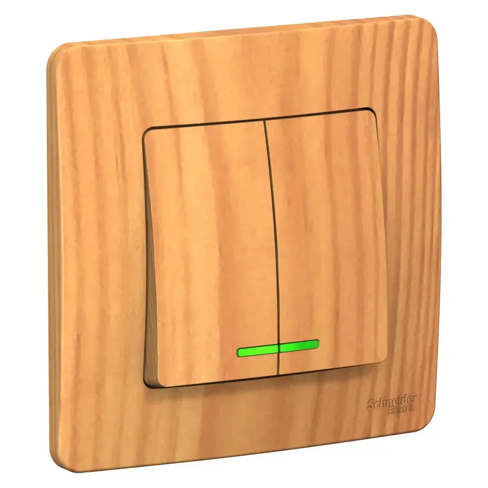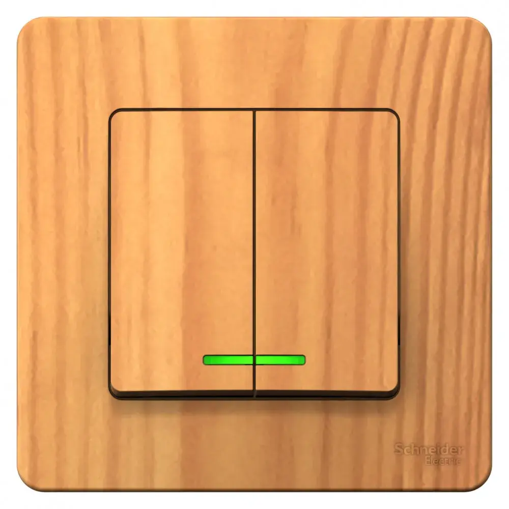 Выключатель Systeme Electric (ранее Schneider Electric) BLANCA (ясень, скрытой установки) двухклавишный предназначен для сетей до 250В, на ток до 10А. Подсветка делает его легко находимым в отсутствие освещения. Двухклавишный выключатель позволяет управлять двумя источниками света из одной точки. Изделия цвета Ясень обладают уникальным рисунком, напоминающим древесный сруб.