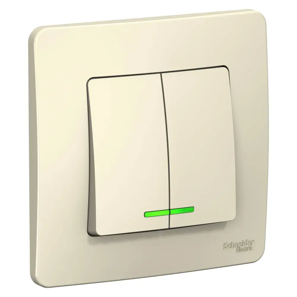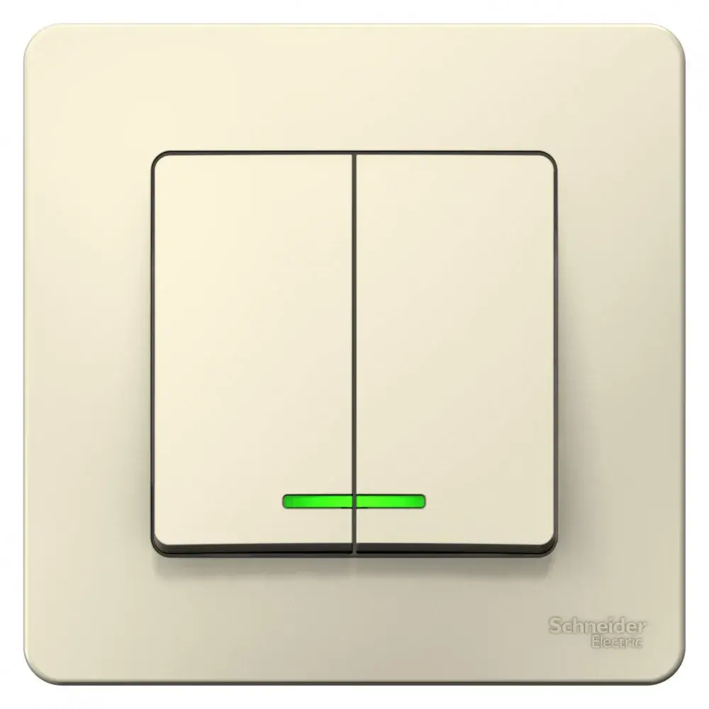 Выключатель Systeme Electric (ранее Schneider Electric) BLANCA (молочный, скрытой установки) двухклавишный предназначен для сетей до 250В, на ток до 6А. Подсветка делает его легко находимым в отсутствие освещения. Двухклавишный выключатель позволяет управлять двумя источниками света из одной точки.