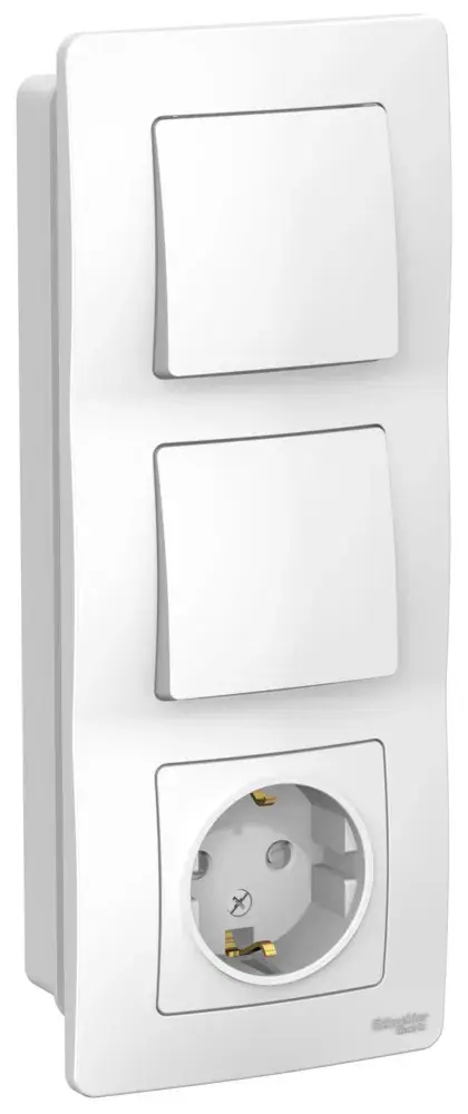 Блок Systeme Electric (ранее Schneider Electric) BLANCA (белый, скрытой установки) предназначен для сетей до 250В, состоит из розетки на 16А с заземлением и шторками и двух одноклавишных выключателей на 10А. Блок удобен в применении и отлично подходит для коридора. Шторки открываются при одновременном давлении в оба отверстия и препятствуют проникновению посторонних предметов.