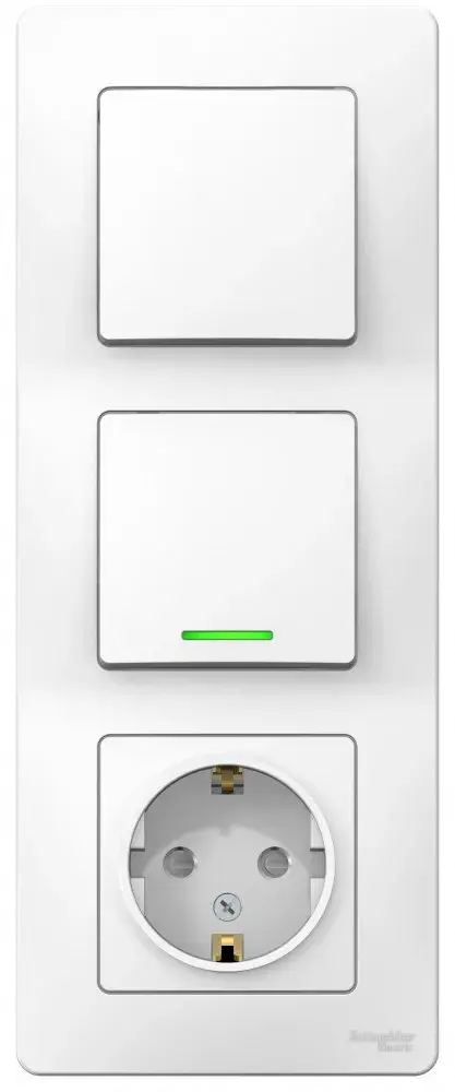 Блок Systeme Electric (ранее Schneider Electric) BLANCA (белый, скрытой установки) предназначен для сетей до 250В, состоит из розетки на 16А с заземлением и шторками и двух одноклавишных выключателей на 10А, один из которых с подсветкой, что делает его легко находимым в отсутствие освещения. Блок удобен в применении и отлично подходит для коридора.