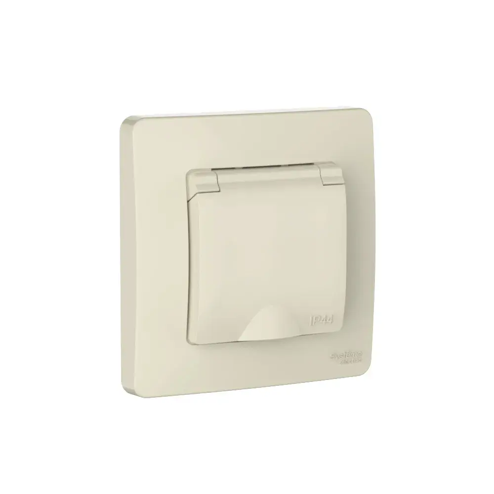 Розетка Systeme Electric BLANCA (молочный, скрытой установки) розетки одинарной с заземлением, шторками и крышкой подходит для сетей 250 В, на ток 16А. Изделие со степенью защиты IP44 обеспечит безопасность использования в ванной и на кухне.