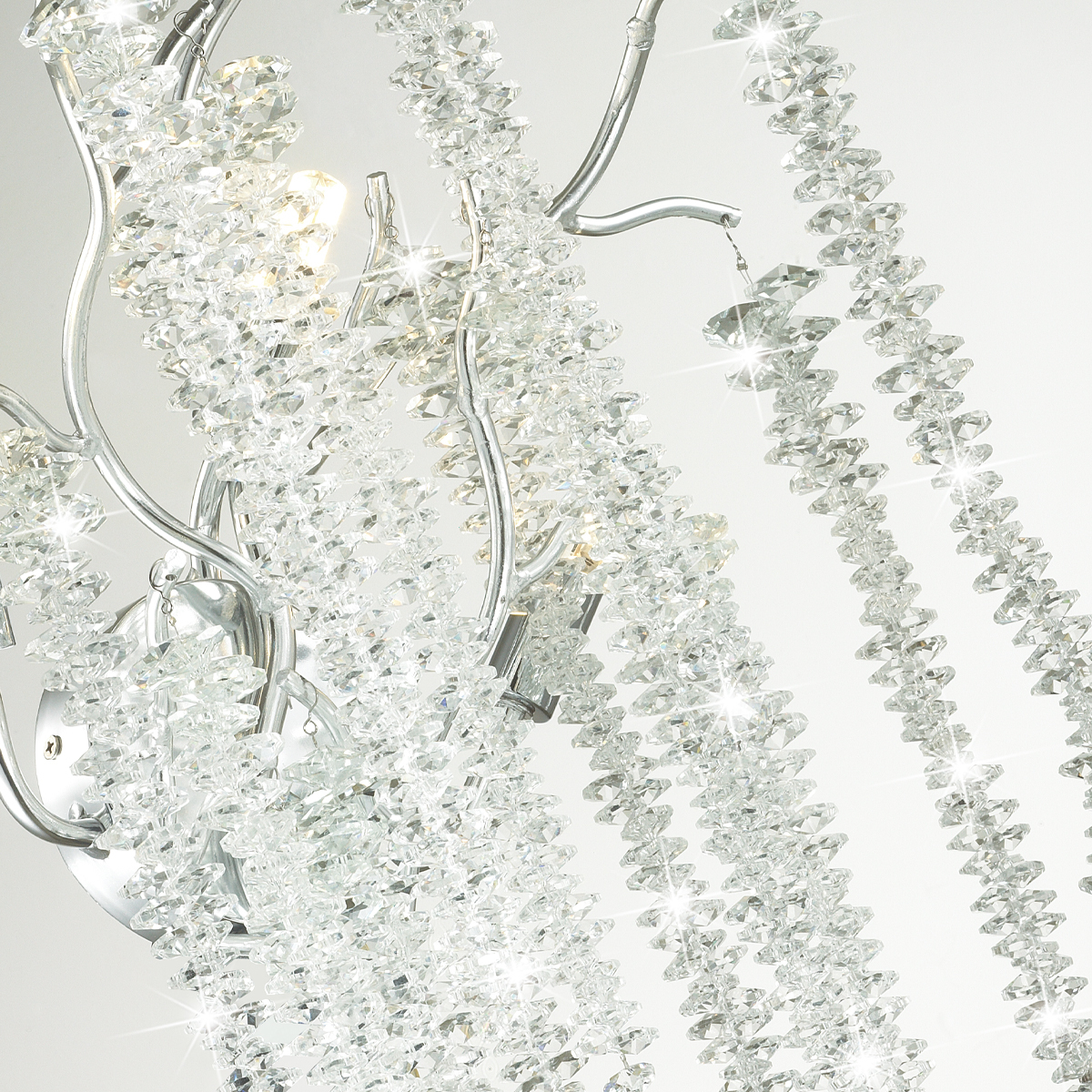 Линия Banche — это природные мотивы, изящество линий и многообразие форм, выраженных в моделях люстр и настенных светильников. Множество свисающих подвесок из плотно нанизанных переливающихся хрустальных бусин, словно «сережки» на изогнутых ветвях плакучей ивы. Арматура в серебристом цвете выполнена из алюминия. Аккуратная точечная сварка фиксирует соединения. Ручным способом можно формировать «крону» люстр и бра, подгибая и выпрямляя ветви. В линии есть потолочная и подвесная круглые люстры, овальная люстра и бра. Популярная сейчас овальной формы модель предназначена для размещения над обеденной зоной.