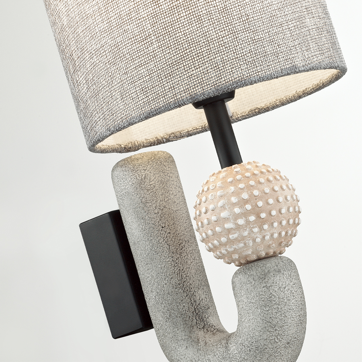 Линия светильников Bagel сочетает в себе природные цвета и поверхности. Мягкие оттенки камня, натуральные ткани и черный матовый металл создают ощущение комфорта и единения с природой. Декоративные элементы выполнены из высококачественного полирезина, имитирующего каменную поверхность. Льняные абажуры бежевого и серого цвета мягко рассеивают свет. Настольные лампы дополнены рассеивателями сверху, для наибольшего комфорта использования.