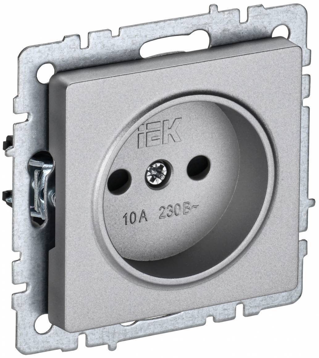 BRITE Розетка 1-местная без заземления с защитными шторками 10А РСш10-2-БрА алюминий IEK