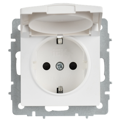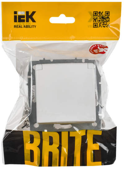 BRITE Розетка 1-местная с заземлением с защитными шторками и крышкой 16А IP20 РСбш10-3-БрАБ арктический белый IEK