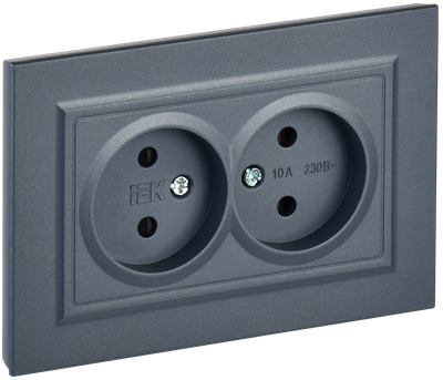 BRITE Розетка 2-местная без заземления с защитными шторками 10А в сборе РСш12-2-БрМ маренго IEK