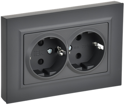 BRITE Розетка 2-местная с заземлением с защитными шторками плоская 16А в сборе РСшПл12-3-БрГ графит IEK