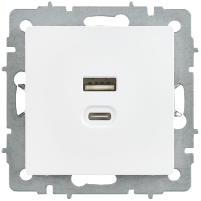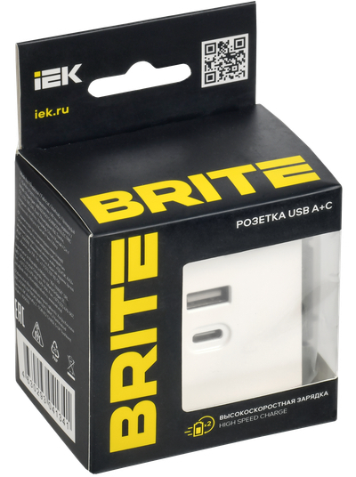 BRITE Розетка USB A+C 45Вт высокоскоростная зарядка РЮ11-2-БрАБ арктический белый IEK