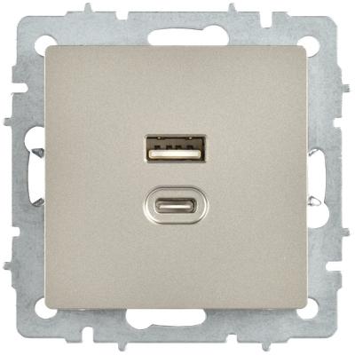BRITE Розетка USB A+C 45Вт высокоскоростная зарядка РЮ11-2-БрШ шампань IEK