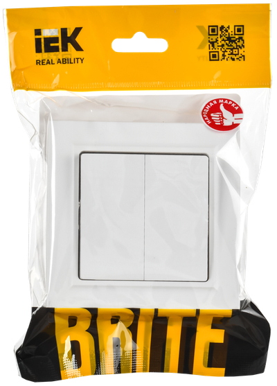 BRITE Выключатель 2-клавишный 10А в сборе ВСР10-2-0-БрАБ арктический белый IEK