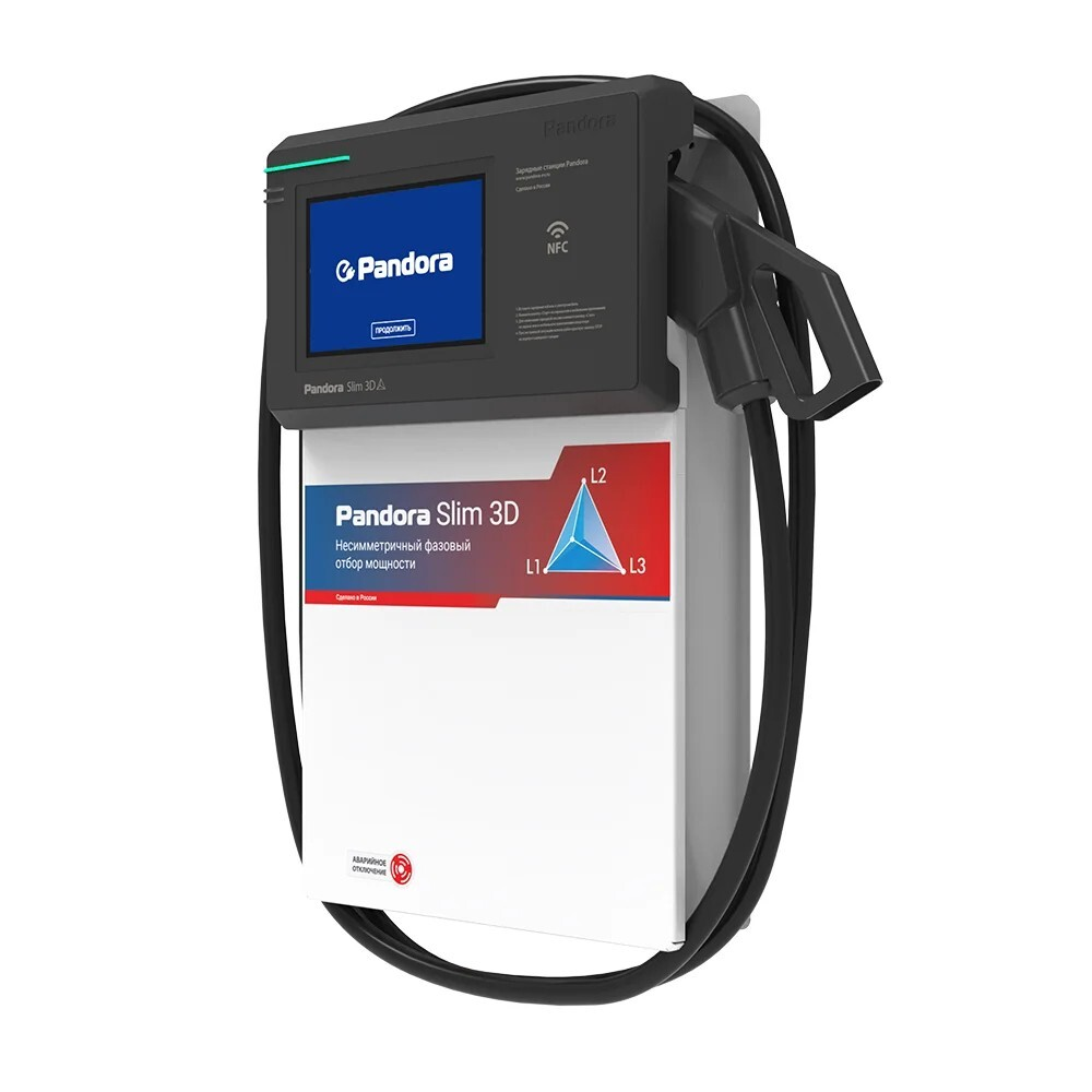 Pandora#nbsp;Slim 3D – интеллектуальная зарядная станция, идеально подходит для размещения в частных домах и использования в условиях ограниченной мощности: станция собирает отдельно с каждой фазы электропитания всю доступную мощность, преобразуя в постоянный ток, и отправляет в тяговую батарею электромобиля. Это значительно, иногда кратно, ускоряет время заряда авто, и стало возможно благодаря применению силового модуля Pandora PSCS-15-500 собственной разработки и производства.