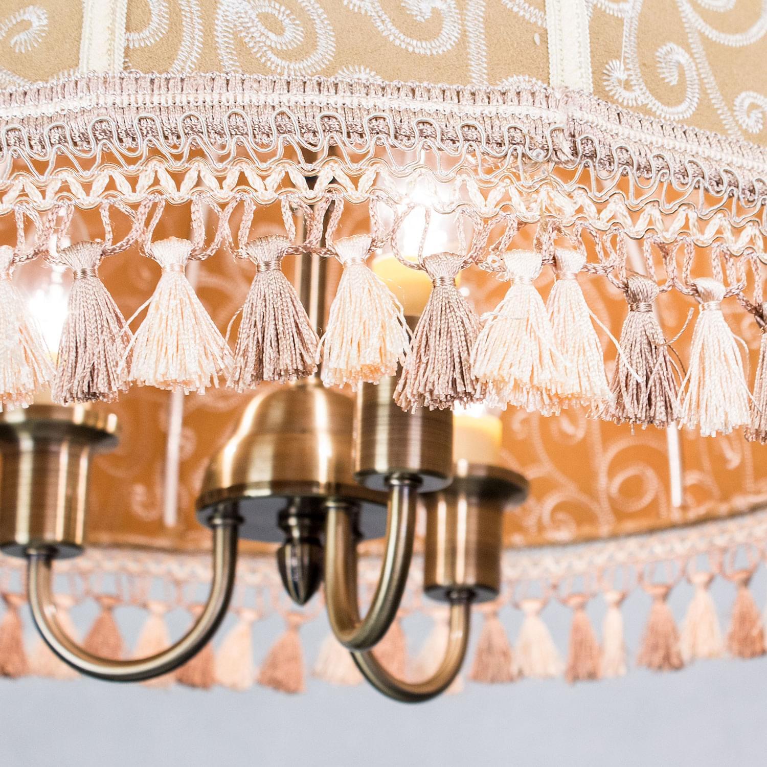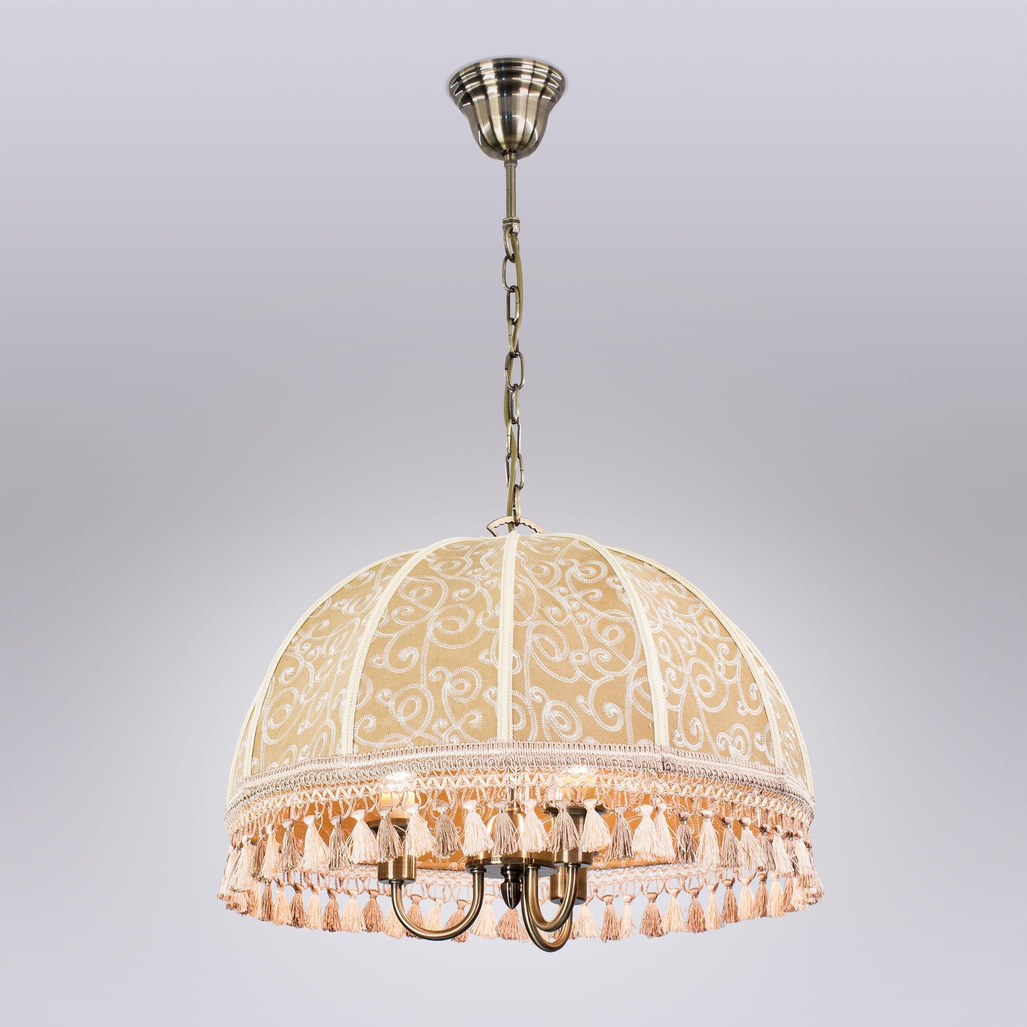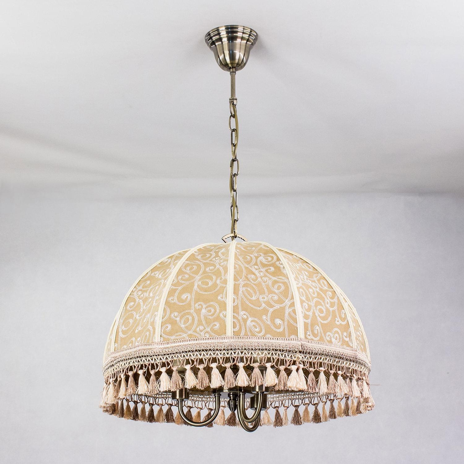 Подвесная трёхрожковая люстра на цепи Citilux Базель CL407135 с классическим абажуром. Корпус светильника металлический, цвет бронза. Абажур тканевый, цвета капучино, украшен изящной вышивкой и декорирован бахромой. Модель подойдёт для освещения уютной гостиной, кухни или веранды в загородном доме или на даче. Поможет создать комфортную атмосферу в кафе и ресторане, великолепно выглядит над столом. Подходит для всех типов потолков, в том числе натяжных, тип крепления – крючок. В изделии используются лампы с цоколем Е14, максимальной мощностью для ламп накаливания 60Вт, светодиодные лампы можно устанавливать более яркие. Высота регулируется от 50 до 135см, диаметр 51см, осветит около 9м².