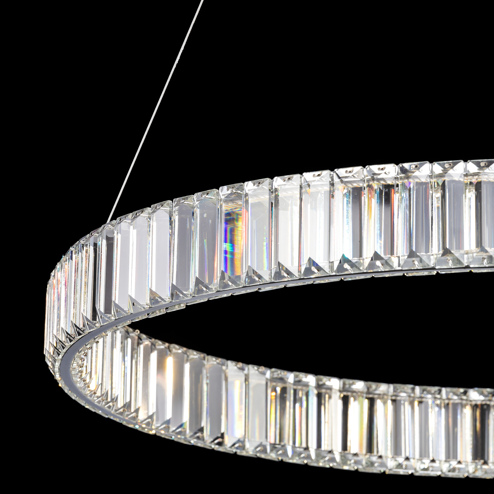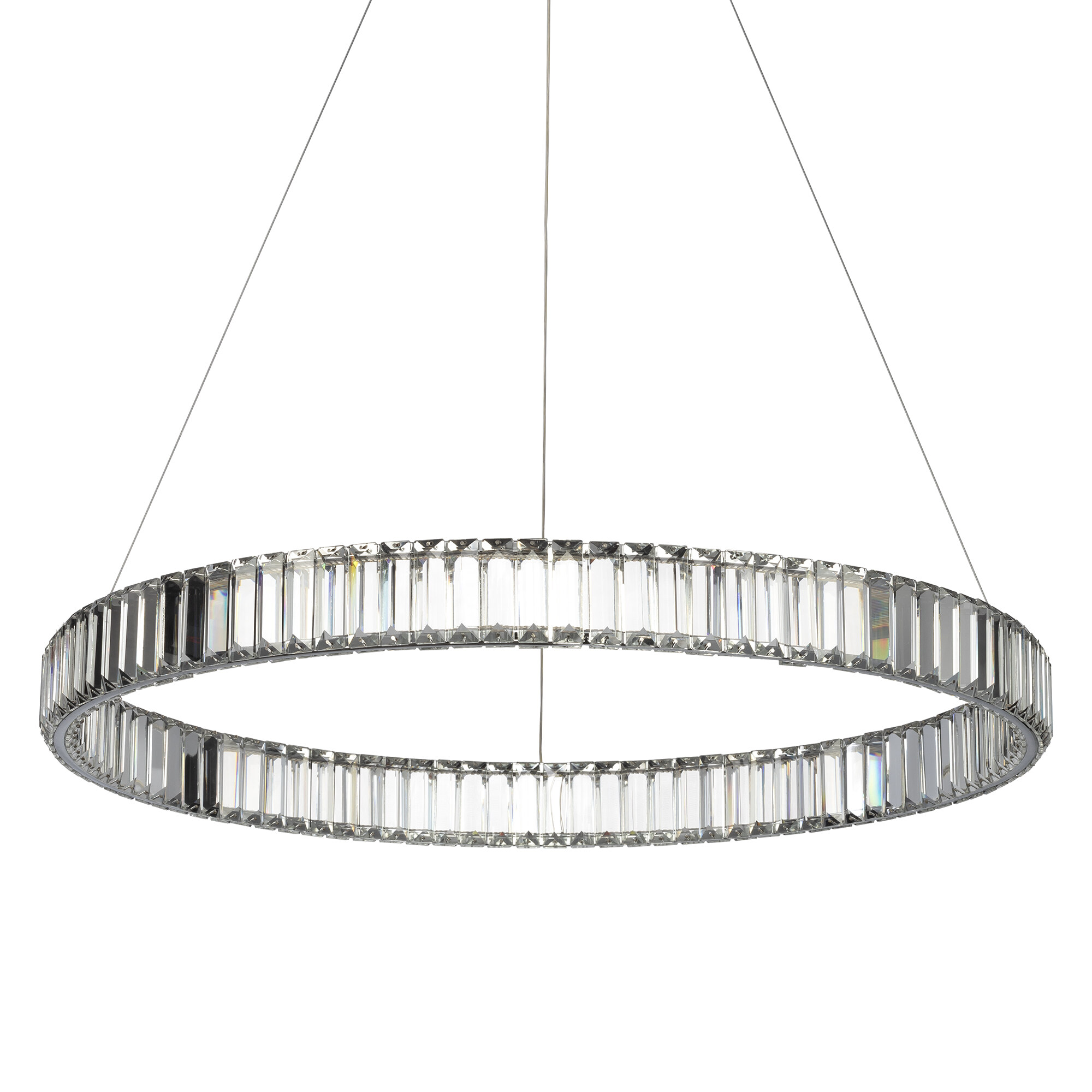 Хрустальная светодиодная люстра Citilux Чезаре CL338181 истинное произведение искусства, которое не оставит равнодушными даже самых требовательных ценителей красоты. Основание круглой формы, цвет хром. Хрустальное кольцо на металлическом каркасе, подвешено на элегантных тросиках и словно парит в воздухе. Хрустальные элементы являются воплощением кристальной прозрачности и современной огранки, они играют сияющими отблесками света и создают неповторимую атмосферу роскоши и элегантности.